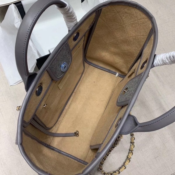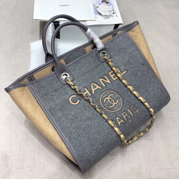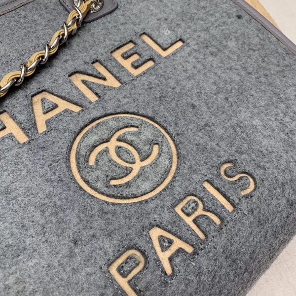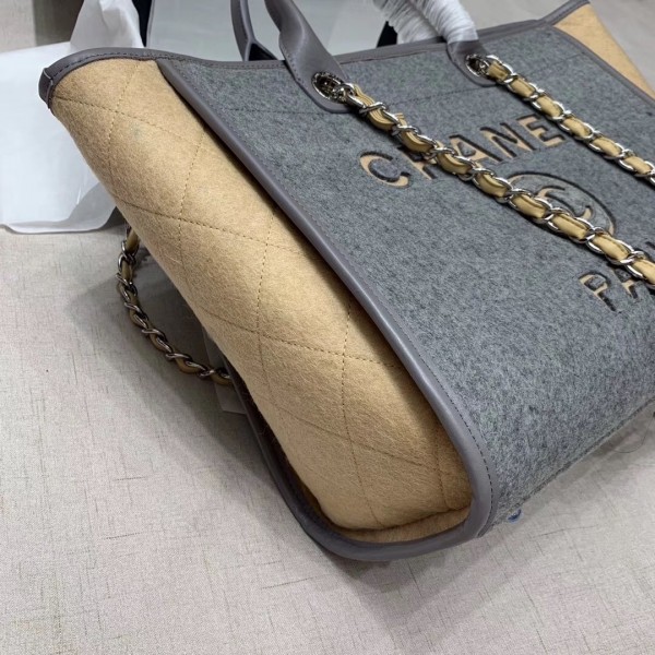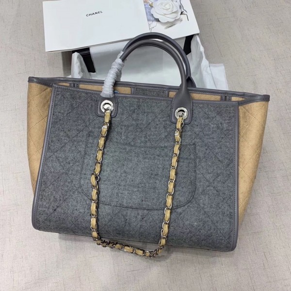 Chanel Deauville Wool Felt Medium/Large Shopping Bag A93786 Gray/Beige 2019 Collection AQ03212