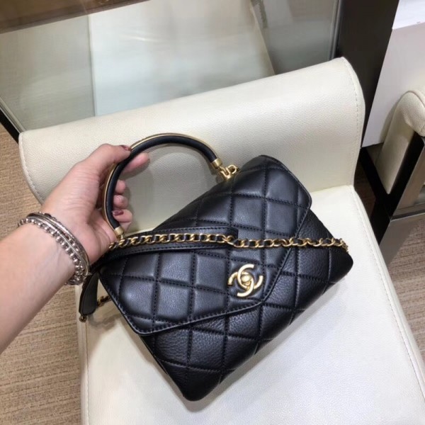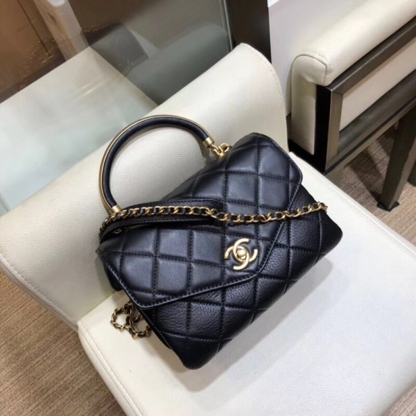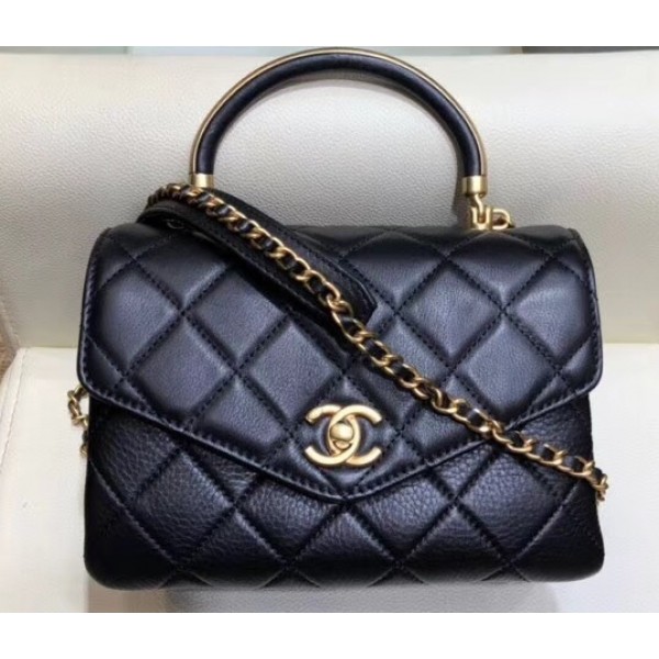 Chanel Quilted Calfskin Small Flap Bag with Handle AS0625 Black 2019 AQ03261