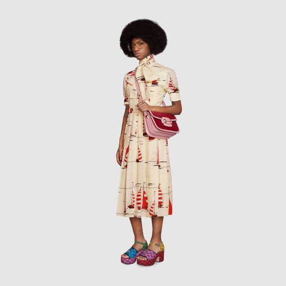 A part of the House’s Beloved lines, the Gucci Horsebit 1955’s signature namesake hardware is complemented by ruby toned leather with a pastel pink trim. Jewel tones appear throughout the Ouverture collectsion, linking the lines dear to the Hose with precious stones and gems.