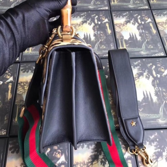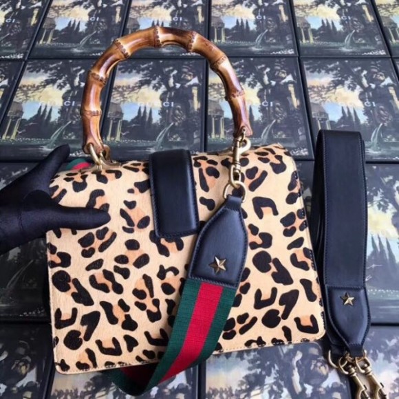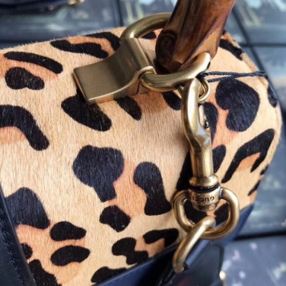 Leopard Dionysus Small Bamboo Top Handle Bag