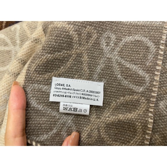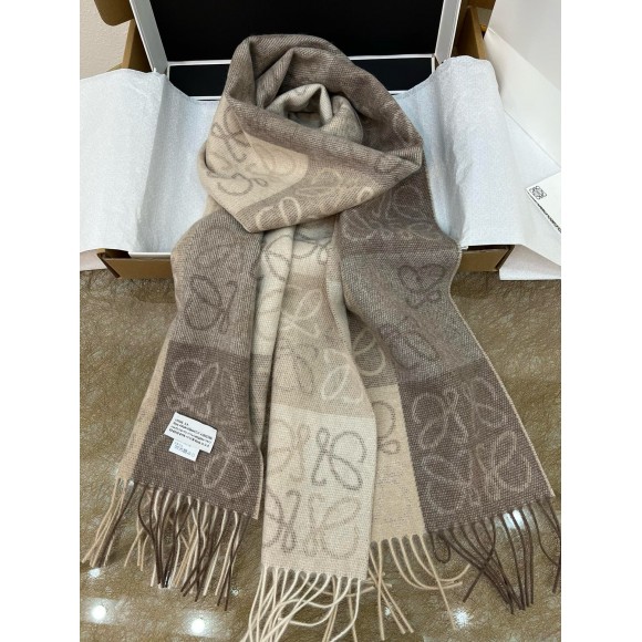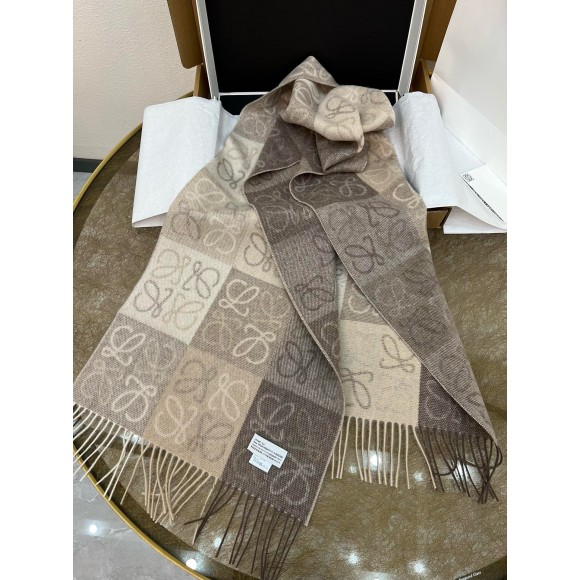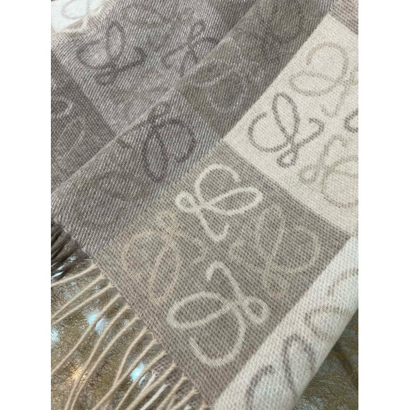 Loewe Anagram Checkerboard Scarf in Beige Wool and Cashmere