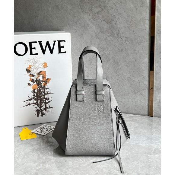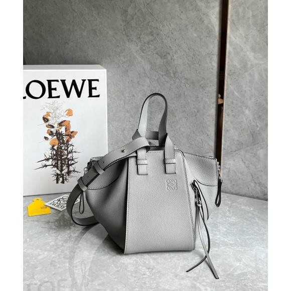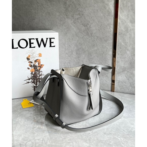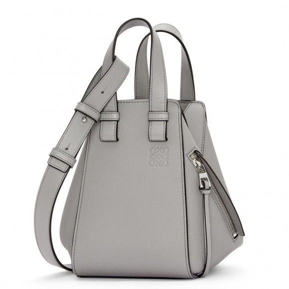 Loewe Compact Hammock Bag in Pearl Grey Grained Calfskin