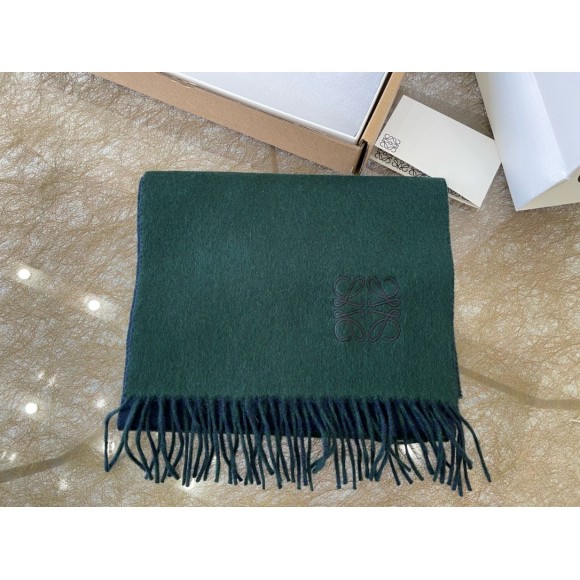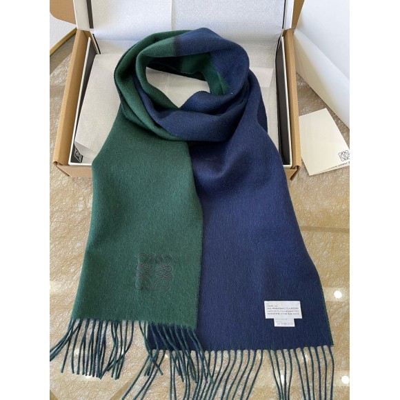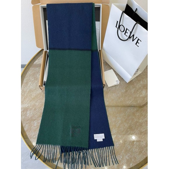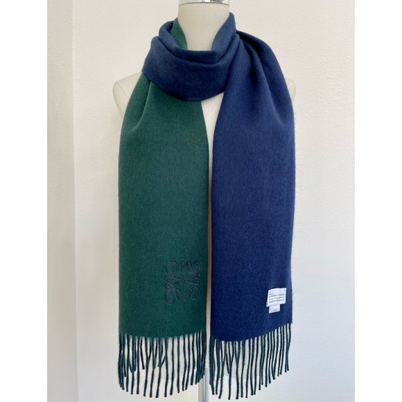 Loewe Window Scarf in Green/Blue Wool and Cashmere