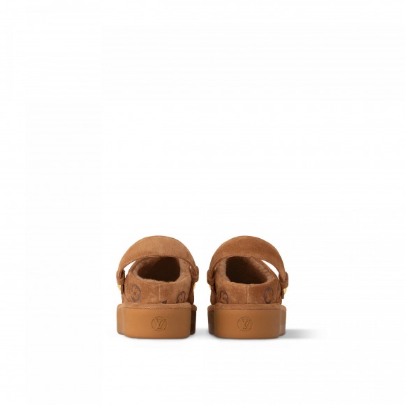 The Aspen platform clog comes in velvety suede calf leather, which is debossed with the iconic Monogram pattern and complemented by a snug shearling lining. This on-trend, year-round style can be worn with or without the backstrap, which is fixed with engraved, gold-tone press-studs. It is finished with a chunky rubber outsole.