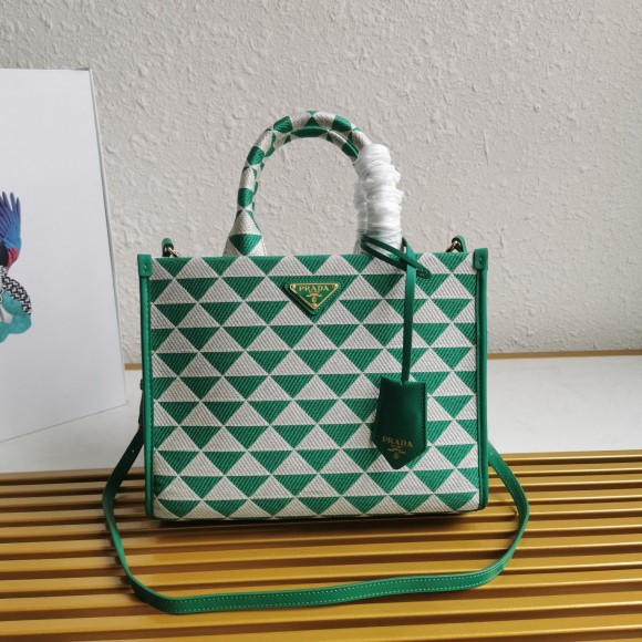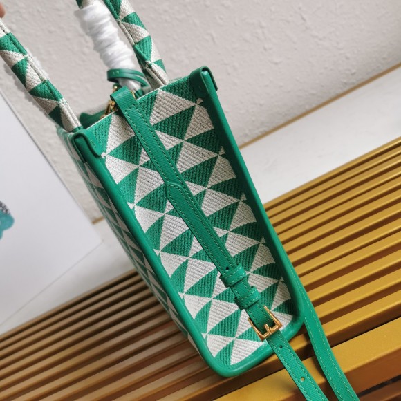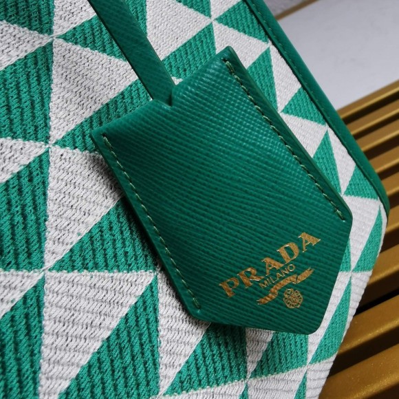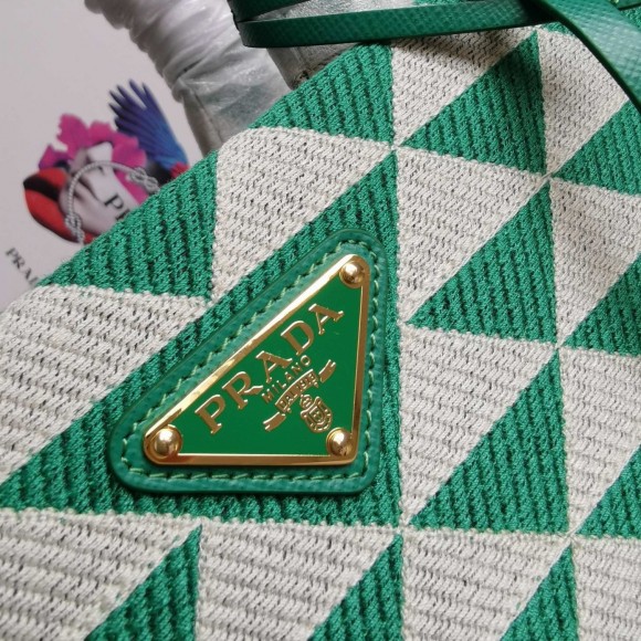 Prada Symbole Small Bag In Green/White Jacquard Fabric