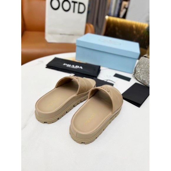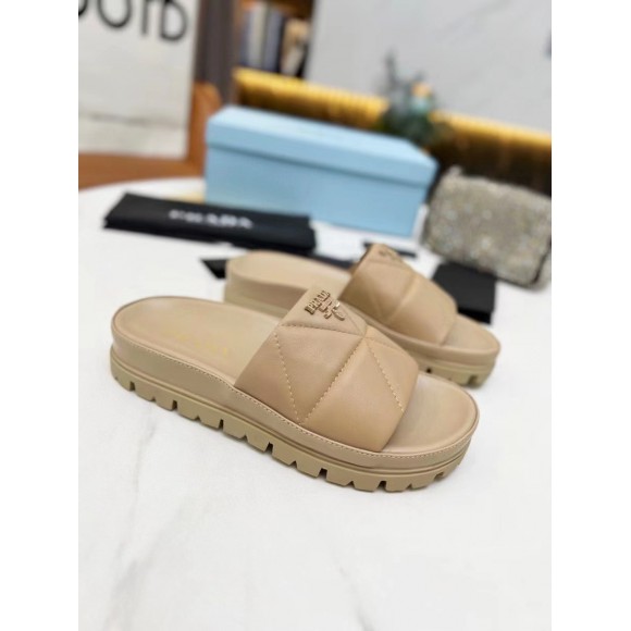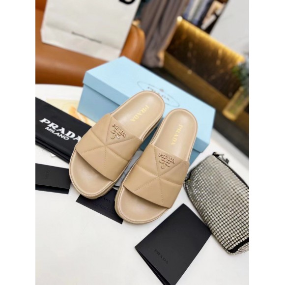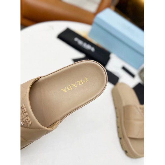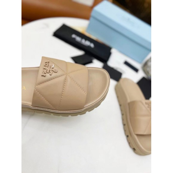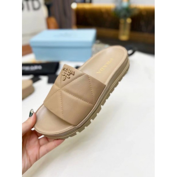 Prada Women's Slides In Beige Quilted Nappa Leather
