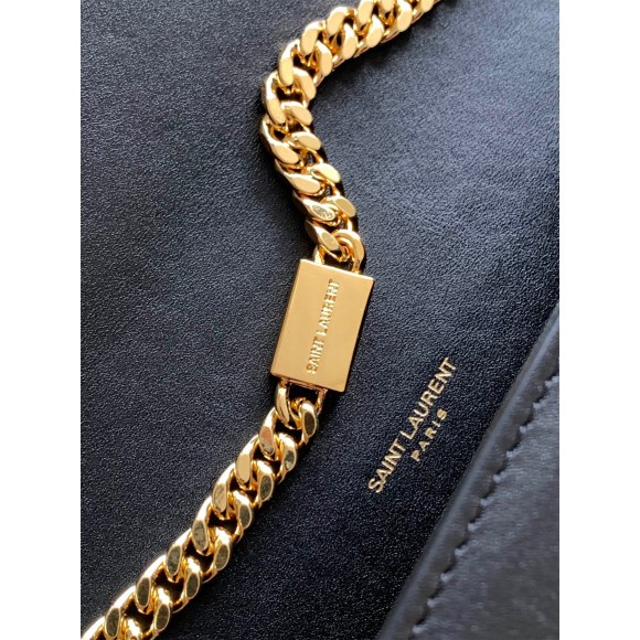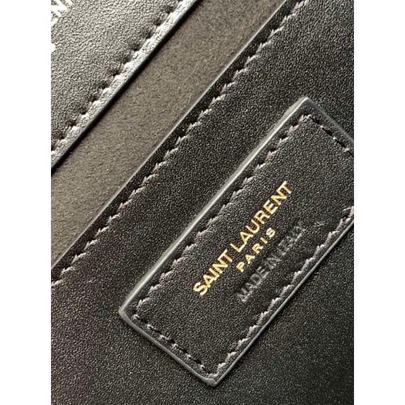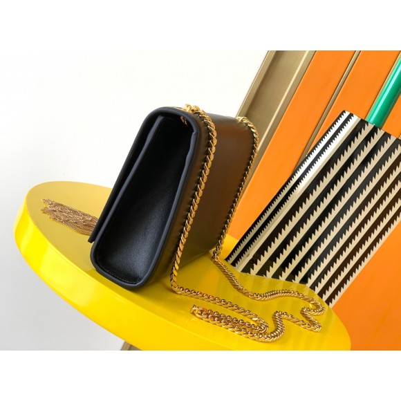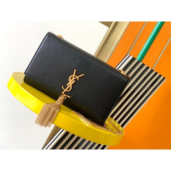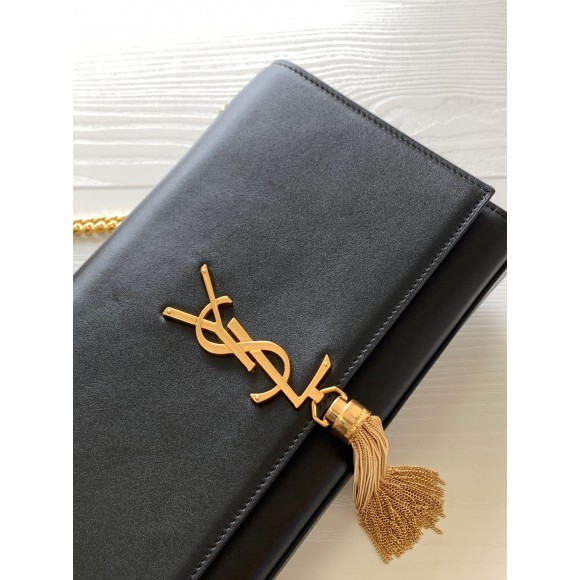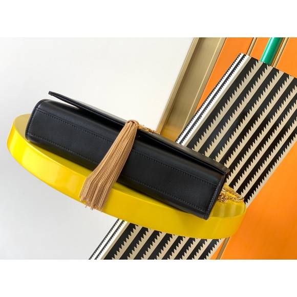 - Front flap decorated with metal YSL initials and chain tassel