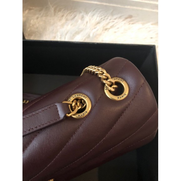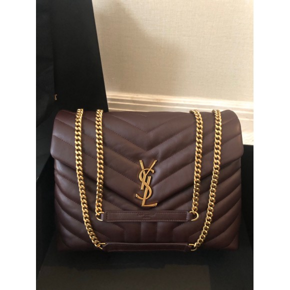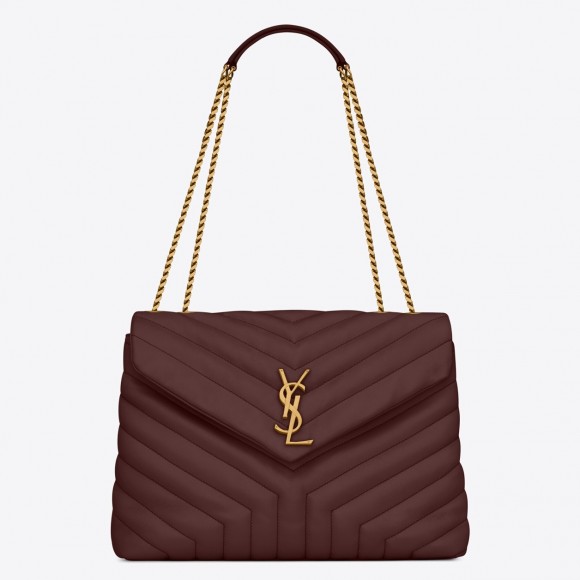 Saint Laurent LouLou Medium Chain Bag In Burgundy Quilted Calfskin