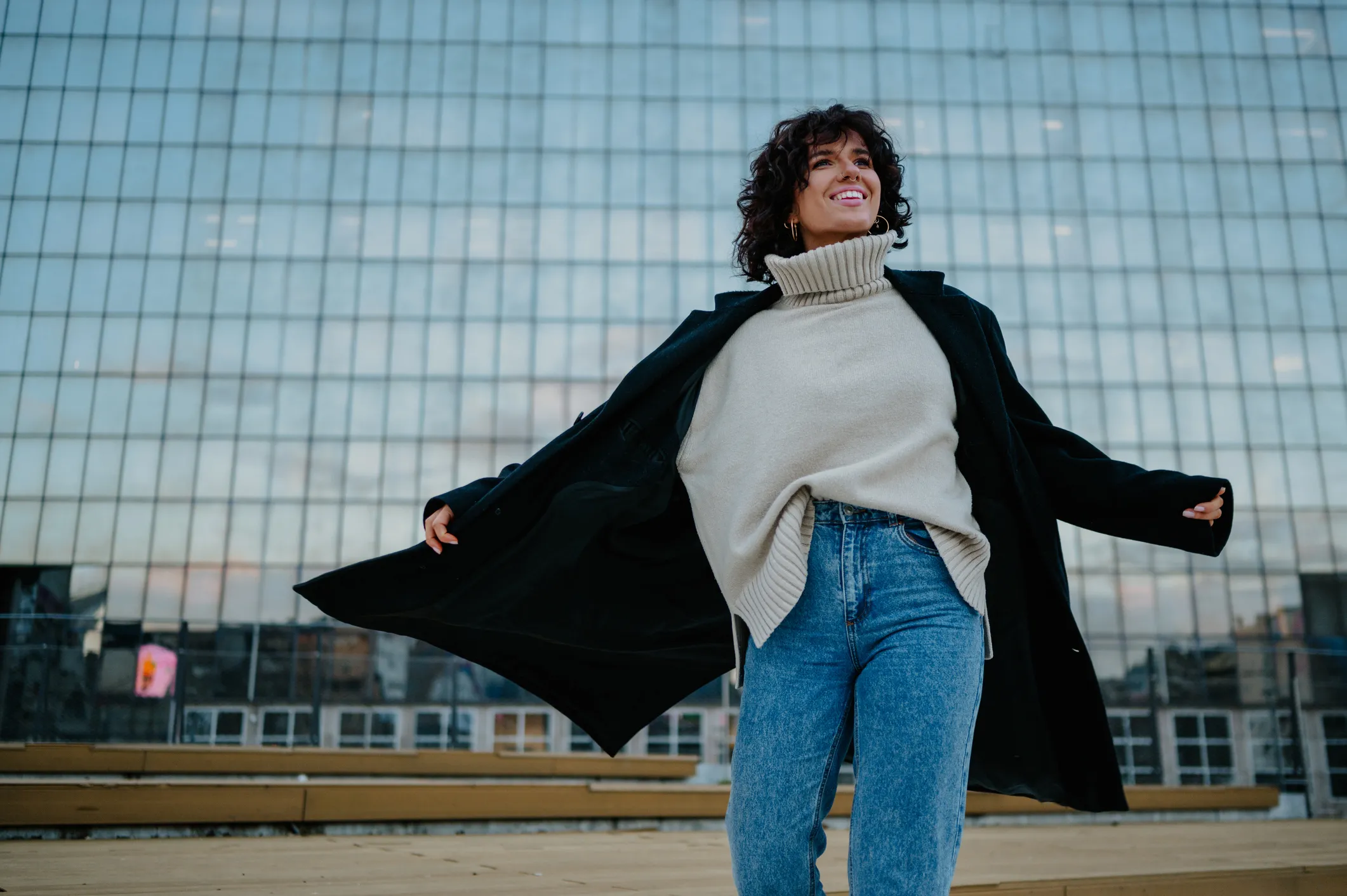 6. Flattering turtleneck: If you know turtleneck sweaters, you know they can be a hit or miss in the flattering department. This winner has semi-fitted sleeves with silver buttons!