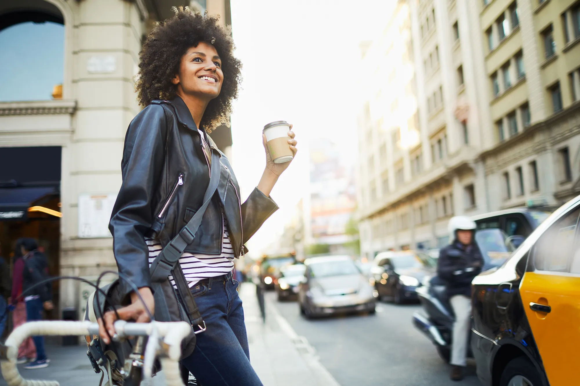 - Street-Style Leather Jacket: For running errands, you can pair this leather jacket with a plain white tee, high-waisted jeans, a cap and white sneakers.