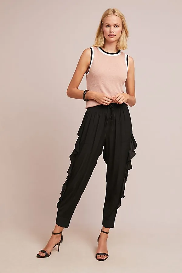 The Anthropologie Edie Joggers prove ruffles are not just reserved for boho chic tops and frocks!