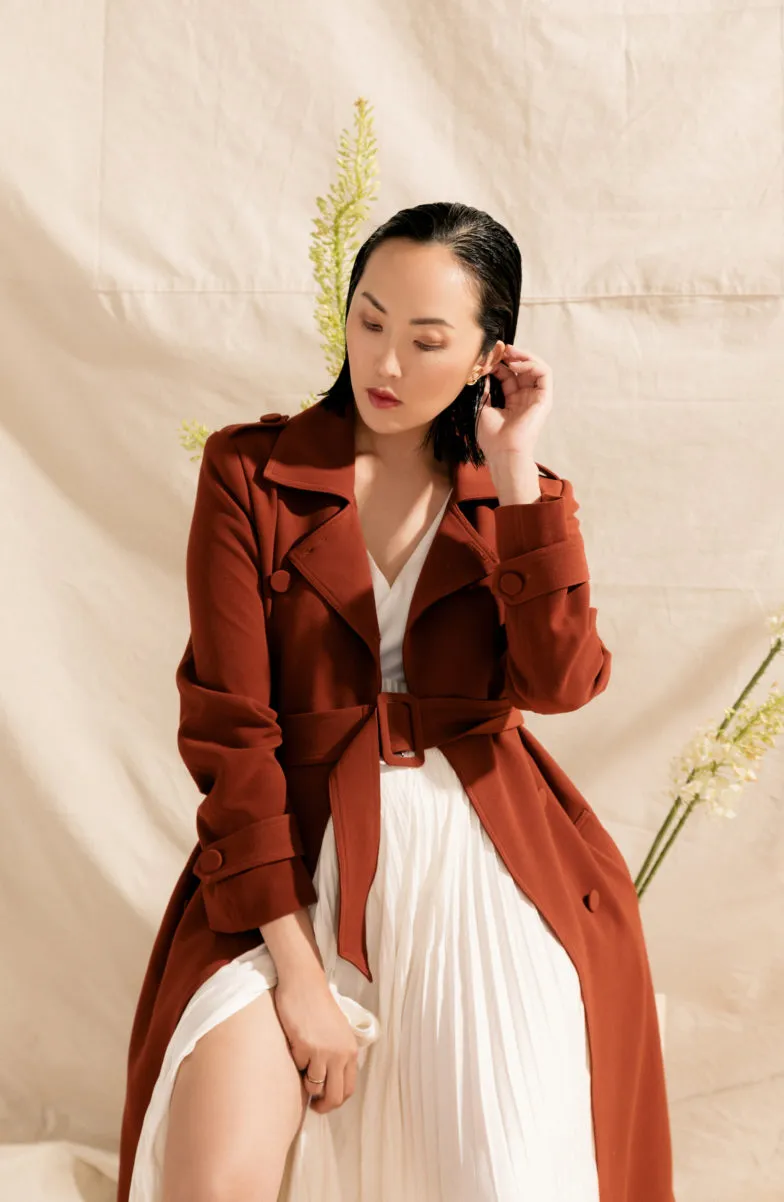 “I knew from the start that I wanted to have a trench coat in my collection,” Lim wrote about the design on her personal blog. “This gorgeous rust color is warm, almost like a muted oxblood color, and I’m so in love with how it turned out.”