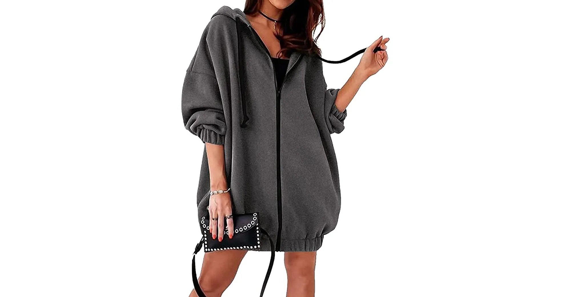 The banded hem, however, is an important detail that truly makes this sweatshirt in a league above the rest. It gives the piece a clean, tapered hem for an elevated look. It doesn’t have ultra-tight ribbing like other hoodies though! It still offers plenty of room for movement. This hem also reaches low enough that if you keep this hoodie zipped up, you could wear it as a mini dress!
