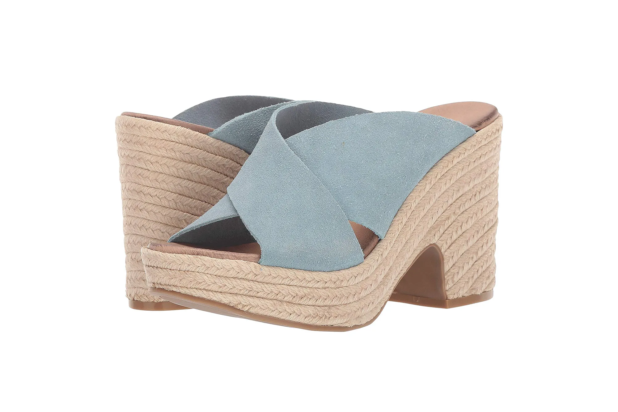 Peeking out from underneath the upper, you’ll find a padded, fixed footbed, and below that, the fun continues with a jute-wrapped heel and platform, holding true to the espadrille style. The layers of jute make their way down a chunky 4-inch heel and a 1 ½-inch platform, leading to the subtle outsole.