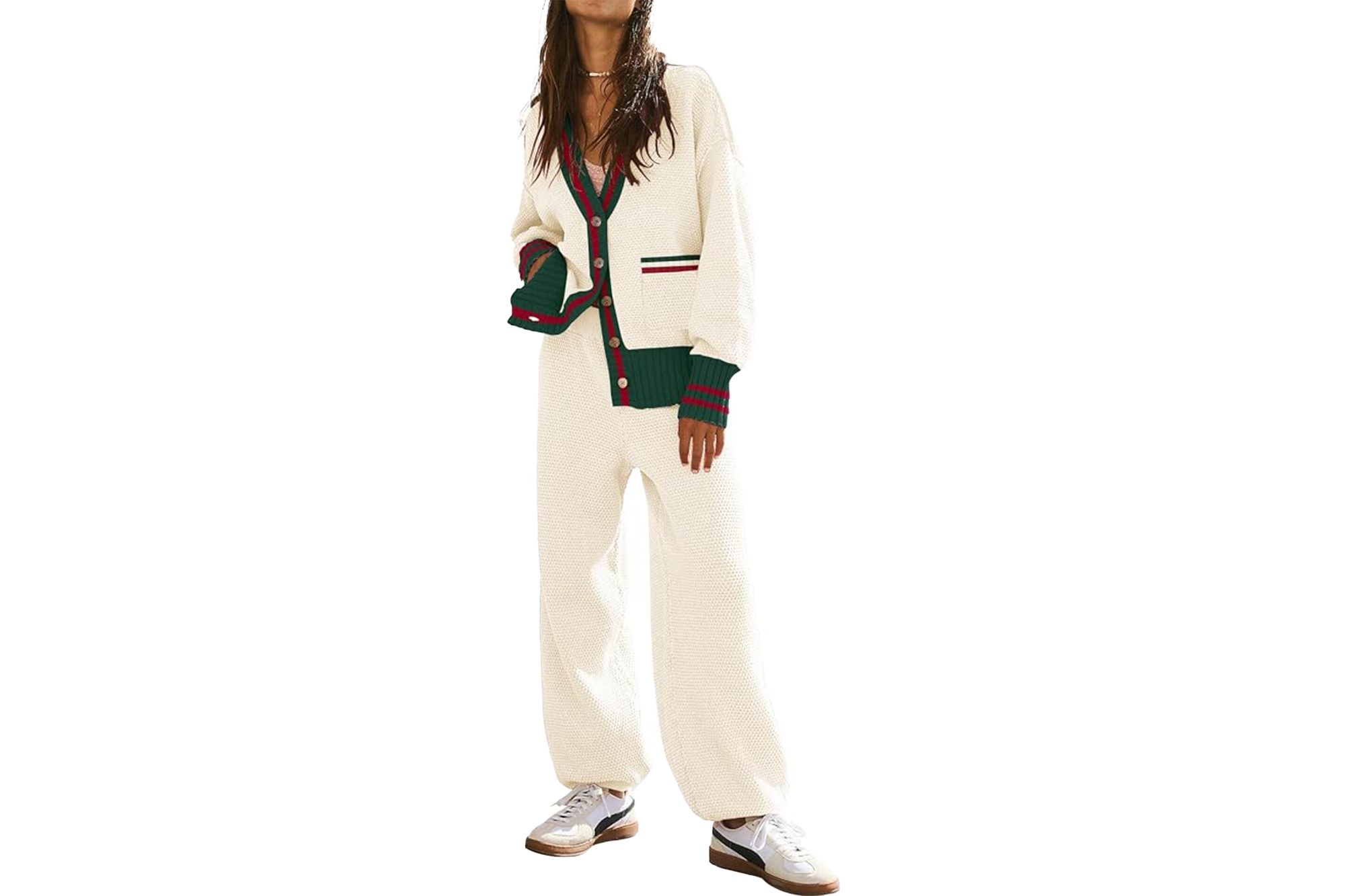 While styling this lounge set, it’s crucial to consider when and why you’re wearing it. For instance, if you’re hanging around the house, this set teams well with fluffy socks and your favorite slippers for a relaxed vibe. Of course, if you’re out and about running errands, this set will coordinate with sneakers and your favorite designer crossbody for a functional ‘fit. What’s more, the ETCYY set comes in 12 color options and has a S to XL size range. Just pick your favorite!