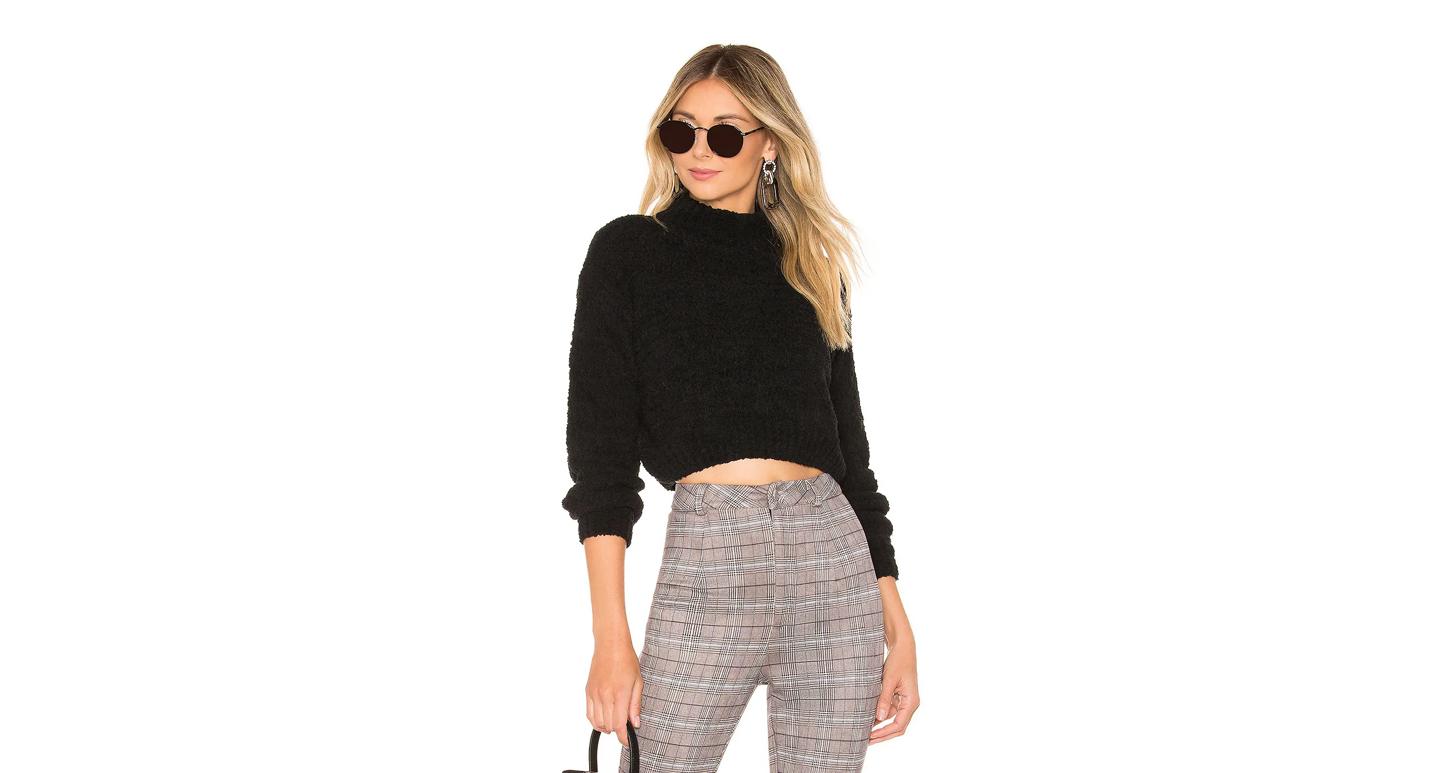 This sweater’s fabric is thick for warmth, but it won’t weigh us down like some oversized, chunky knits. We will be wearing it; it won’t be wearing us. It’s cropped, falling at our waist, making it a wonderful match for high-waisted bottoms. The edges of the sweater are ribbed, so it maintains its shape throughout the day, nothing stretching and sagging out of place. The neckline is slightly raised for a mock-neck effect, which looks mega-cool with statement earrings. High neck and high waistline? Is high-high the new high-low? We’re into it.