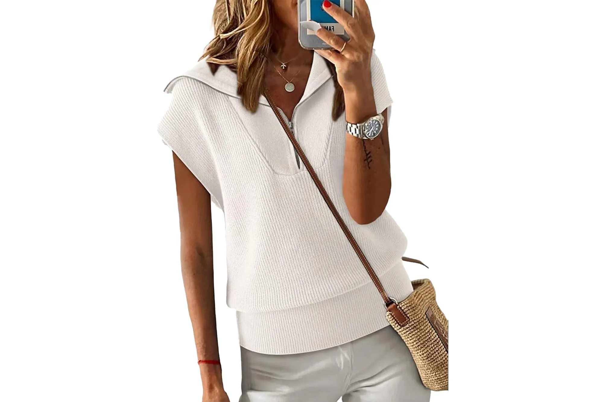While reviewing and gushing over this pullover, one Amazon reviewer noted, “This nice casual v-neck sleeveless top is a ribbed sweater with a half zip-up pullover. I love these sleeveless gems and would highly recommend them.”