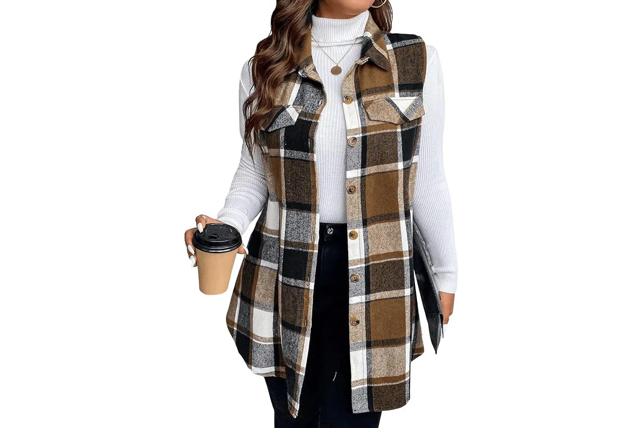 3. Vest to Impress: Upgrade a simple jeans and T-shirt fit with this wintry plaid vest. It’s equal parts cozy and fashionable! — just $33!
