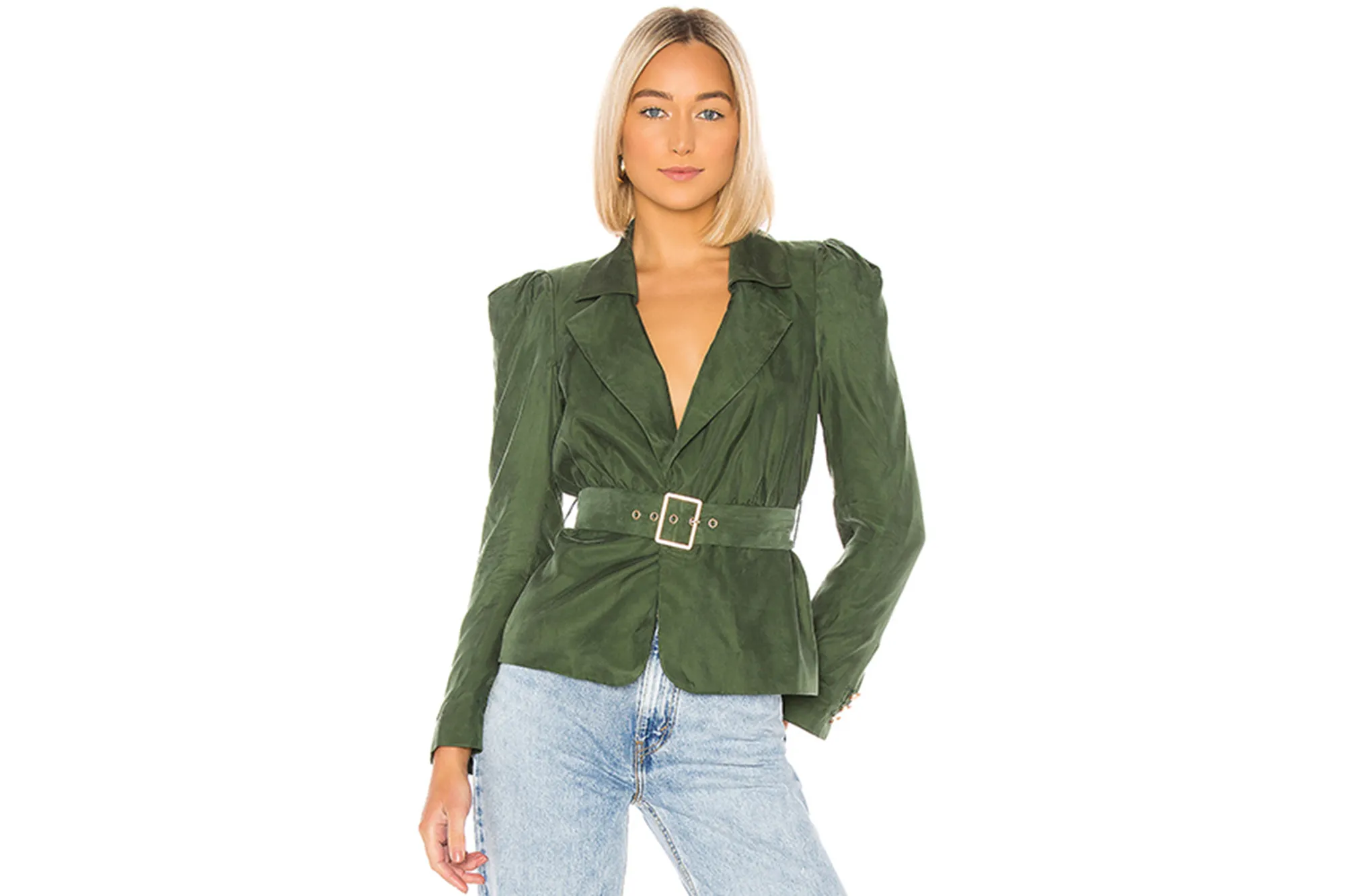 Looking for the ultimate two-in-one? Turn to this jacket. This piece comes available in the chicest green shade and features a seriously useful front belt. Buckle it shut and wear as a top or leave undone and round off any look with it.