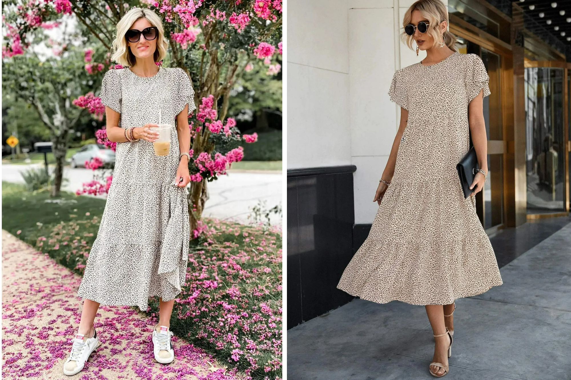 This midi dress has cute, puffy sleeves and a flattering high waist. But more importantly, it’s lightweight and breathable. That makes it comfortable to wear on hot, steamy summer days. It’s super versatile, comfortable, and laid-back, especially if you wear it with a nice hat or a fun pair of flip-flops.