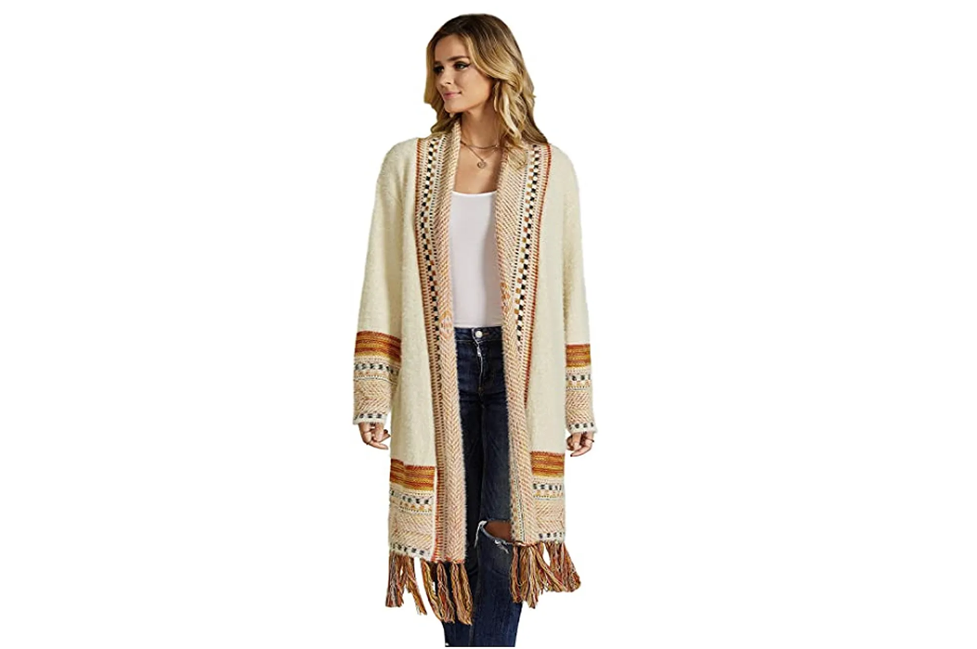 Get the Ferbia Women Boho Maxi Knit Open Front Sweater for prices starting at $34, available at Amazon! Please note, prices are accurate at the date of publication, September 24, 2020, but are subject to change.