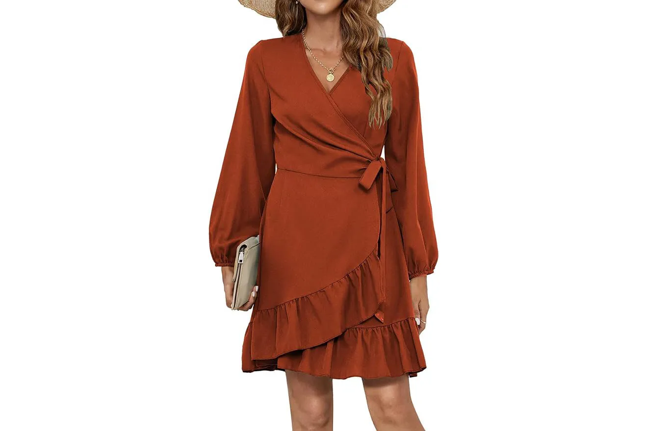 8. Autumnal Perfection: This Naggoo wrap dress comes in so many rich fall hues, but caramel and wine red are definitely our favorite for Friendsgiving festivities — was $40, now just $20!