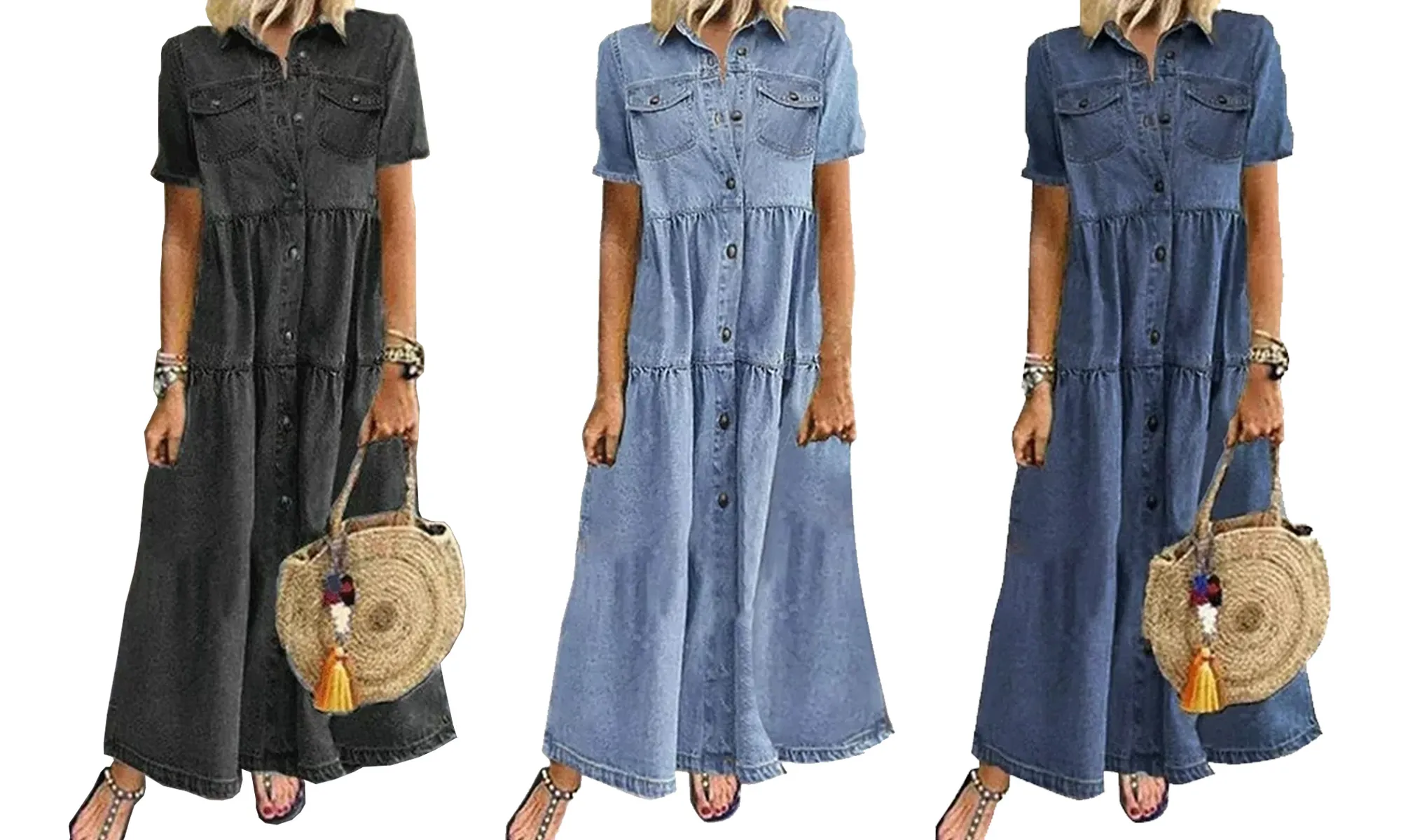 Get the Danhjin Denim-Like Short Sleeve Shirt Maxi Dress (Originally $33) for $18 at Walmart! Please note, prices are accurate at the date of publication, March 19, 2024, but are subject to change.
