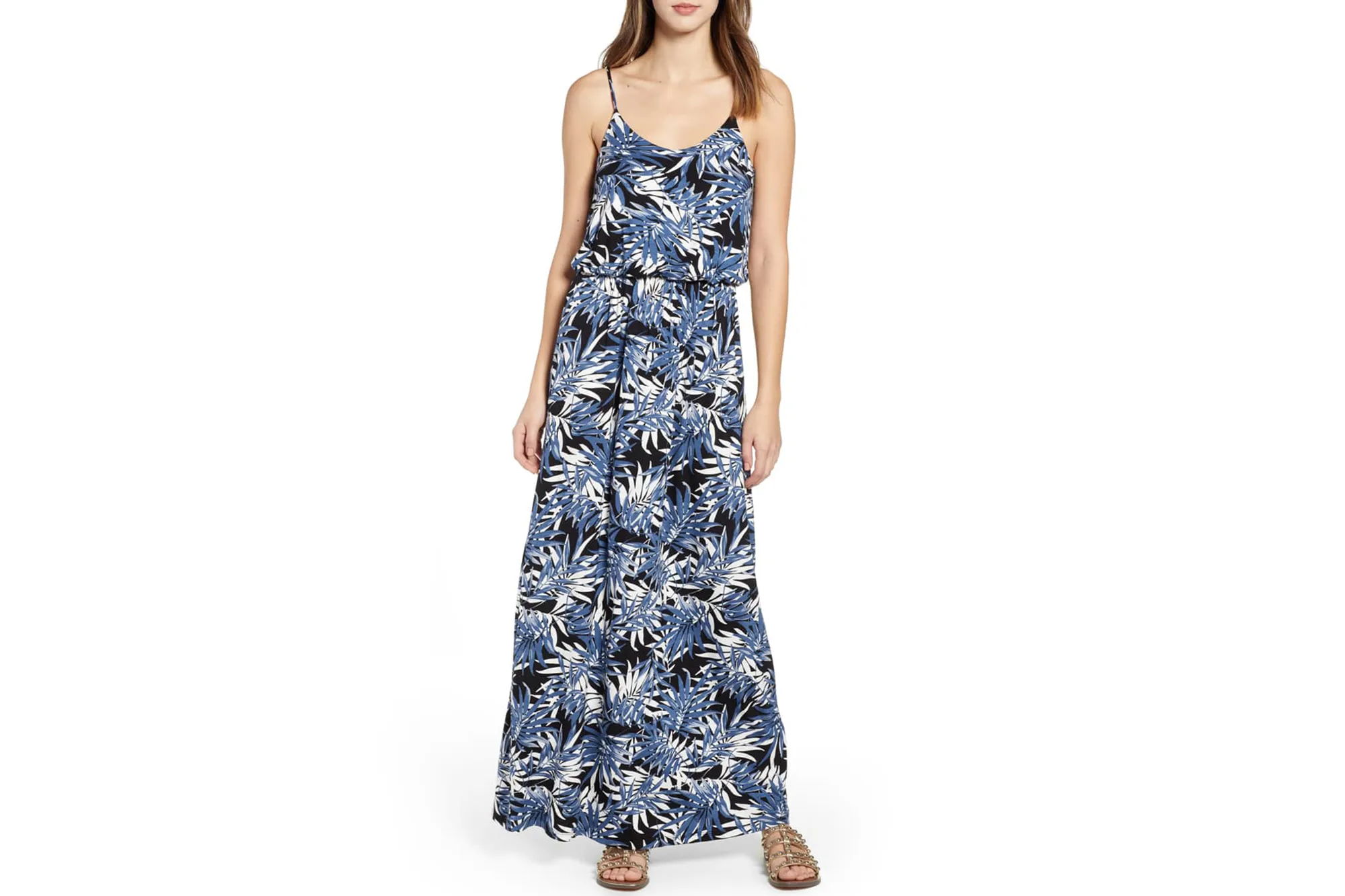 This dress has a scoop neckline with spaghetti straps up top. One of the biggest issues with maxidresses is length, right? They often end up being way too long or even too short, depending on our height. This dress, however, has adjustable straps, so we can customize the fit to be perfect every time!