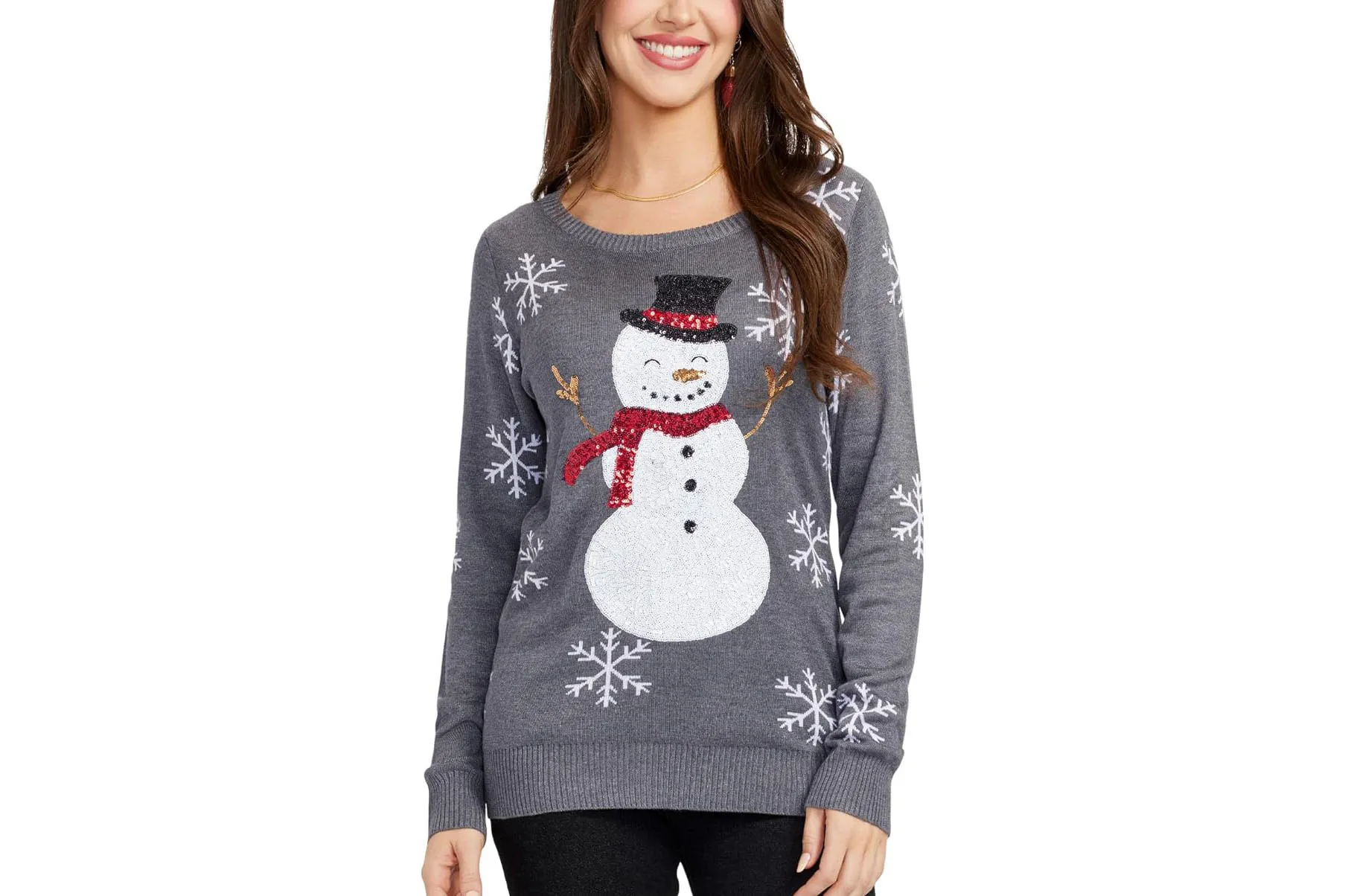 4. Must-Have: A snowman with a top hat is a classic, especially in this sequined pullover that’s sure to snag compliments.