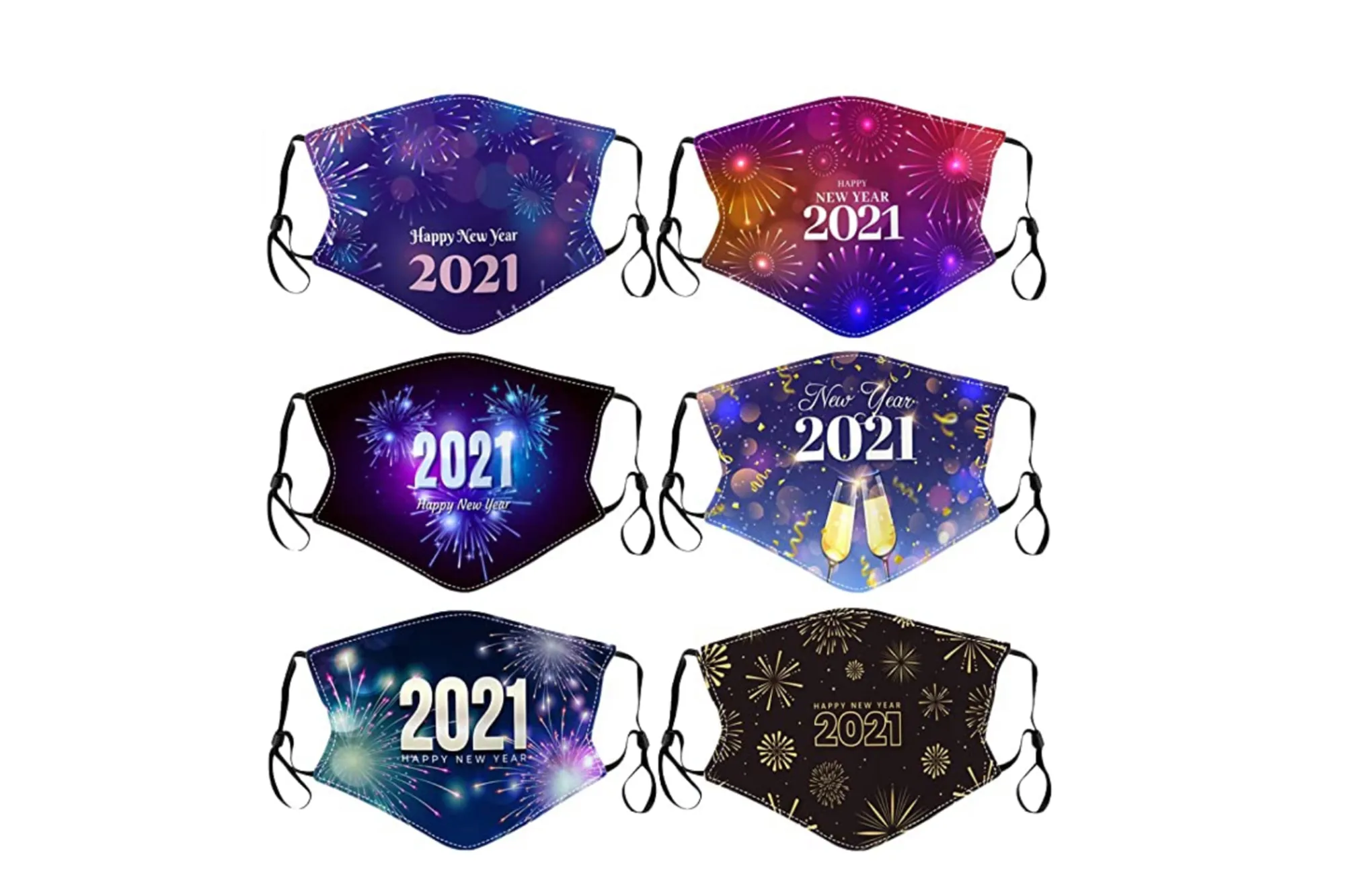Despite the promising vaccine news that’s come out in recent weeks, the threat of COVID-19 spreading is more prominent than ever. To stay safe but still toast to new beginnings, we suggest one of these festive New Year’s Eve-themed face masks for the big night!