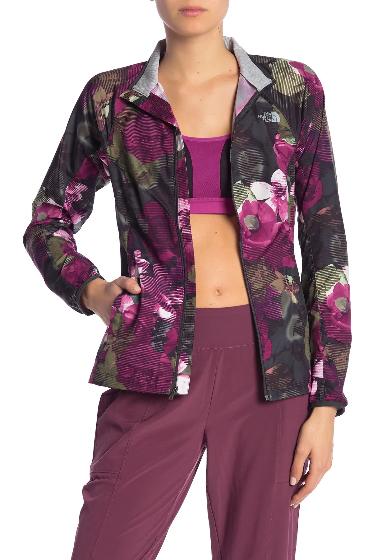 Flowers still slay in the fall! Step out with this beautiful layer designed to keep you dry in style. The grape leaf print is pretty enough to wear the jacket to workout and beyond. Sizes range from extra small to large.