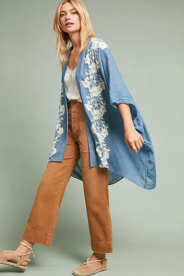 While it’s easy to rely on a light jacket for cool summer nights, there is a piece that can serve as an additional layer without weighing you down — a kimono. It’s a breathable, airy alternative and perfect for leaving draped over your chair to beat the chilly office air conditioner! At Shop With Us, it is our duty to find the sweetest deals and once we found a floral kimono on sale at Anthropologie, it was only right we share the spoils.