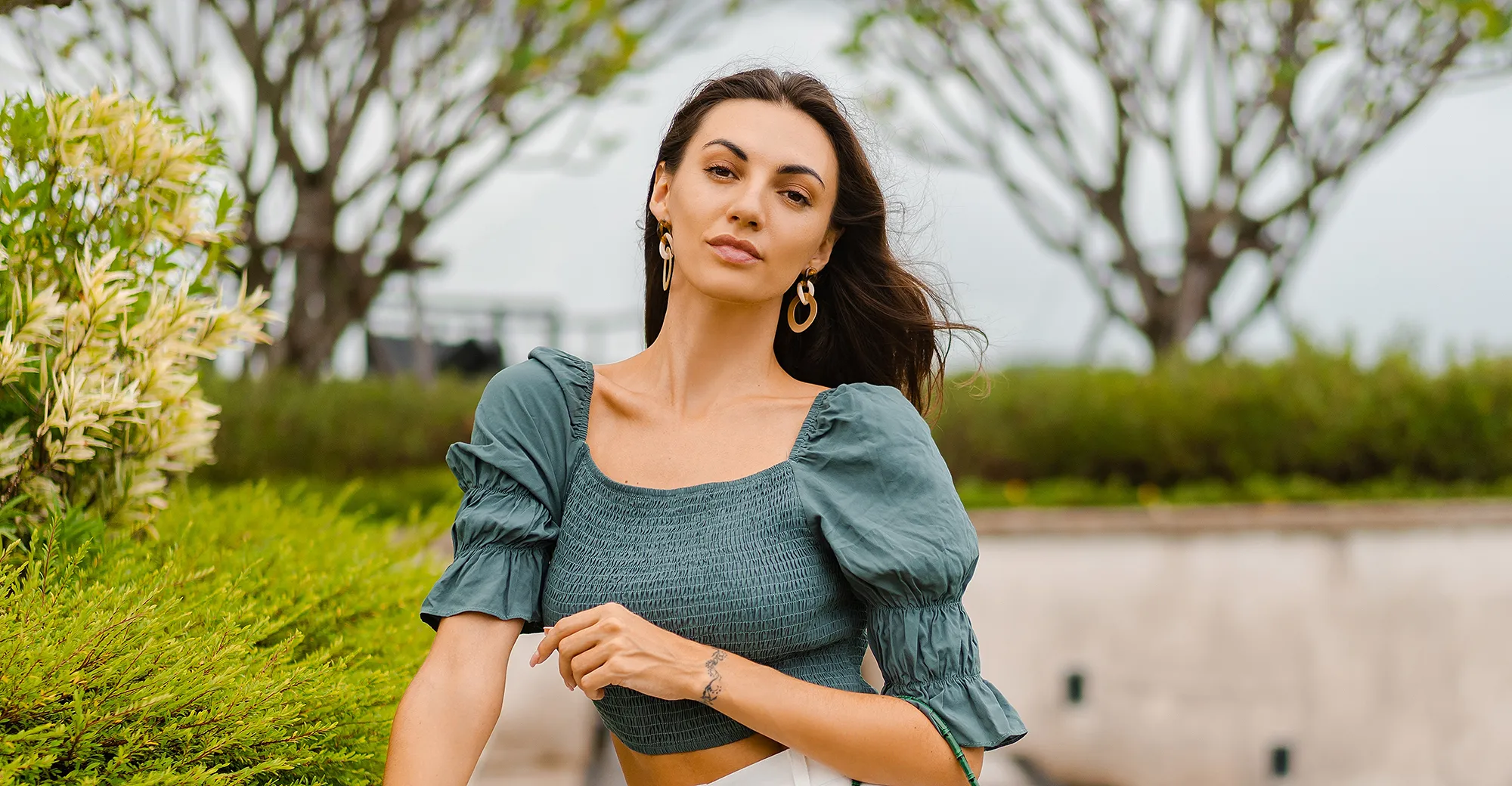 12. Our Absolute Favorite: The guidelines for tops are similar to the ones for dresses. Broaden the shoulders and accent the chest with a piece like this smocked Evaless puff-sleeve top!