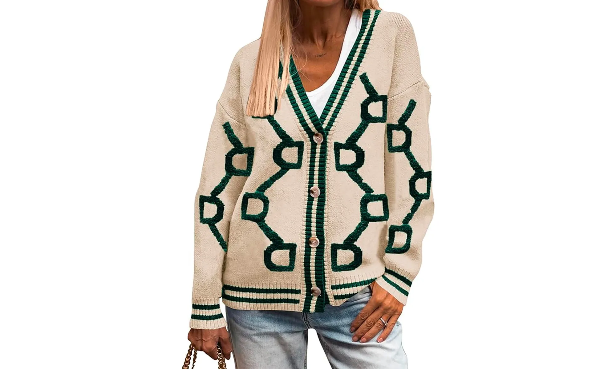 What gives the sweater some extra panache is its interesting preppy style and zigzag design that is undoubtedly eye-catching. The design isn’t anything too crazy — but it’s just enough to bring some extra flair to any outfit it’s paired with.
