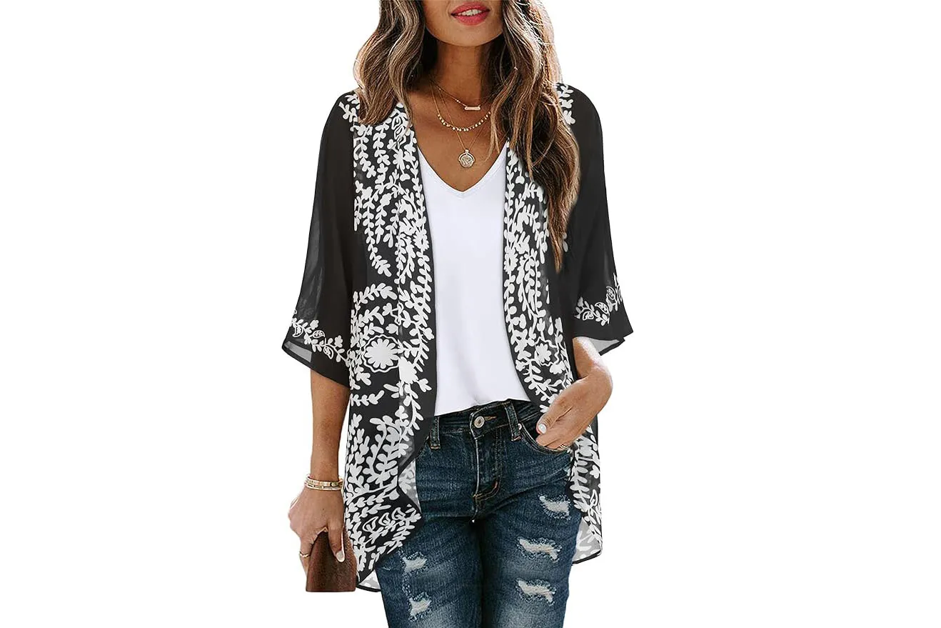 It seems that tens of thousands of reviewers have already discovered this versatile garment — we’re a little late, but better late than never, right? The kimono-style cardigan is made of a lightweight polyester and spandex blend, making it just mesh enough to hide the details of your outfit but still show your body silhouette. Plus, you’ll love the skin-cooling effect of the material!