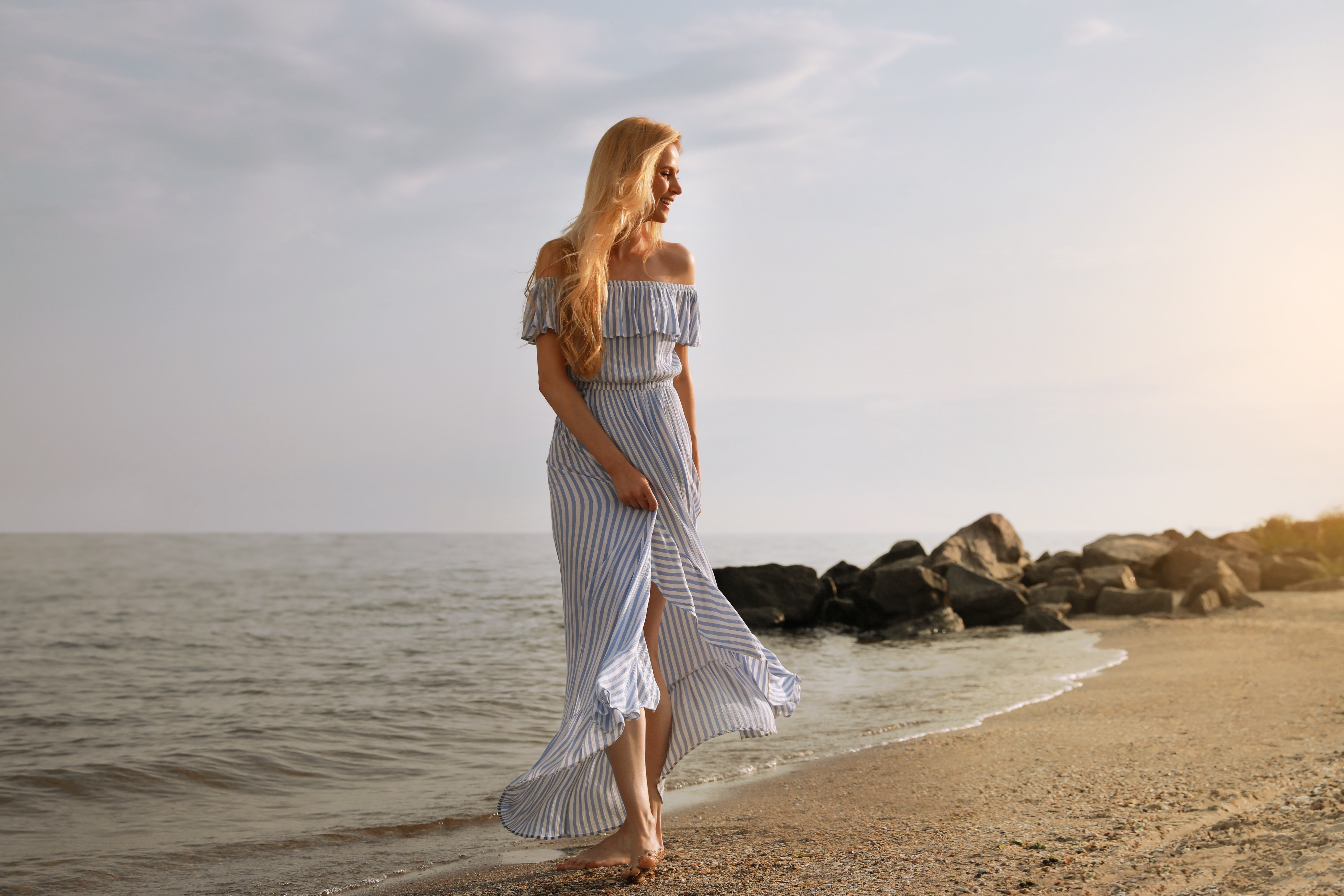 6. Sleek Stripes: These sleek striped wide-leg pants can be worn with your swimsuit and a button-up for the beach and some heels, a tank and statement jewelry for a date night at sunset!