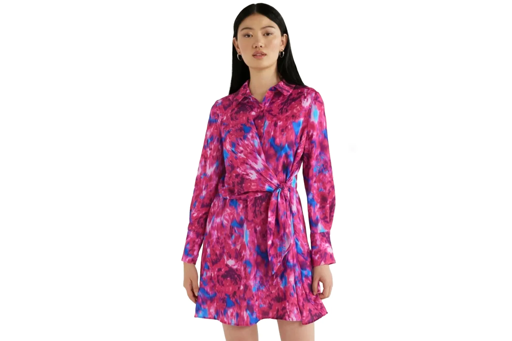 The Scoop women’s mini dress with side tie, designed by A-list designer and Project Runway judge Brandon Maxwell, will elevate your spring sartorial aesthetic. It features a 100% polyester fabrication for durability and breathability, and it boasts a super eye-catching print splashed across the garment. Also, the long sleeves on this piece add a little refinement, which helps to provide a clean, uniform finish.