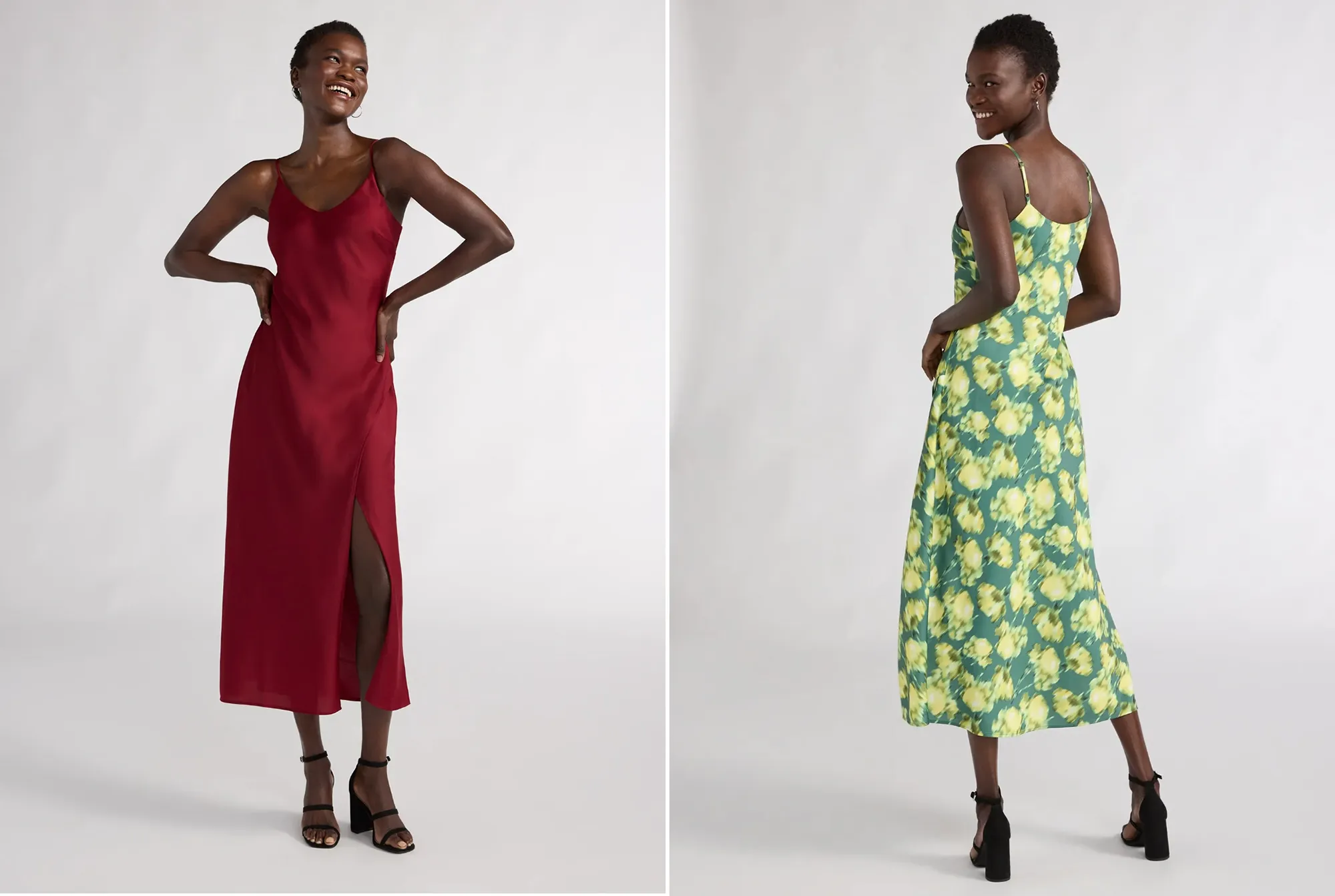 Scoop’s satin midi dress showcases a rich red hue and a slim cut that shows off your curves in all the right places. It includes a thigh-high slit, matter satin fabric, and a flowy body that moves with you. The chic, slinky dress is simple to wear casually and paired with flats or sandals to shop or grab a bite to eat. And it’s simple to dress up: Add a pair of heels, a jacket and your favorite jewelry for the perfect day-to-night look.