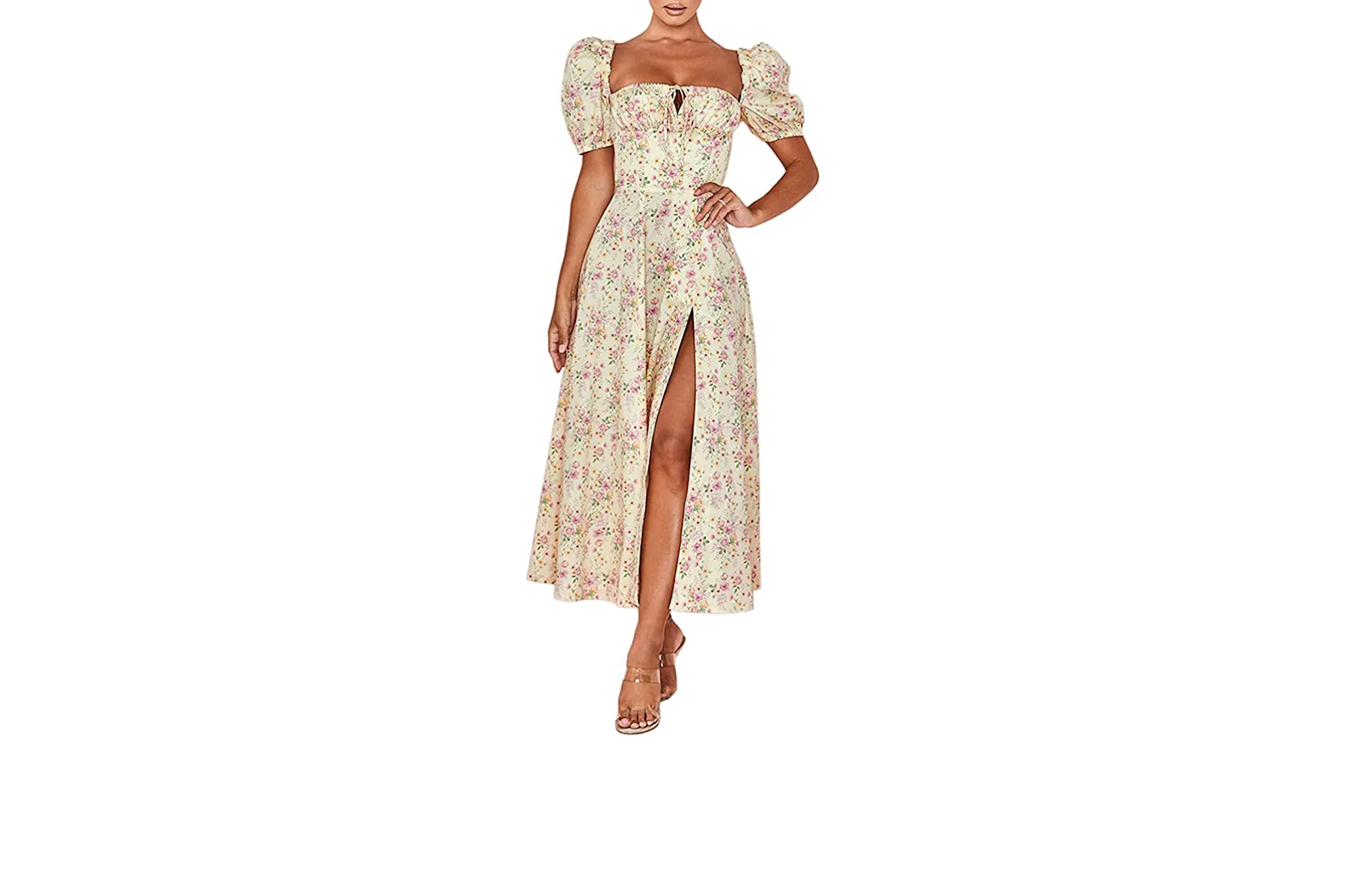 See it! Get the Murfhee Women’s Elegant Floral Print Puff Sleeve Ruched A-Line Maxi Dress for just $24 at Amazon! Please note, prices are accurate at the date of publication, March 15, 2022, but are subject to change.