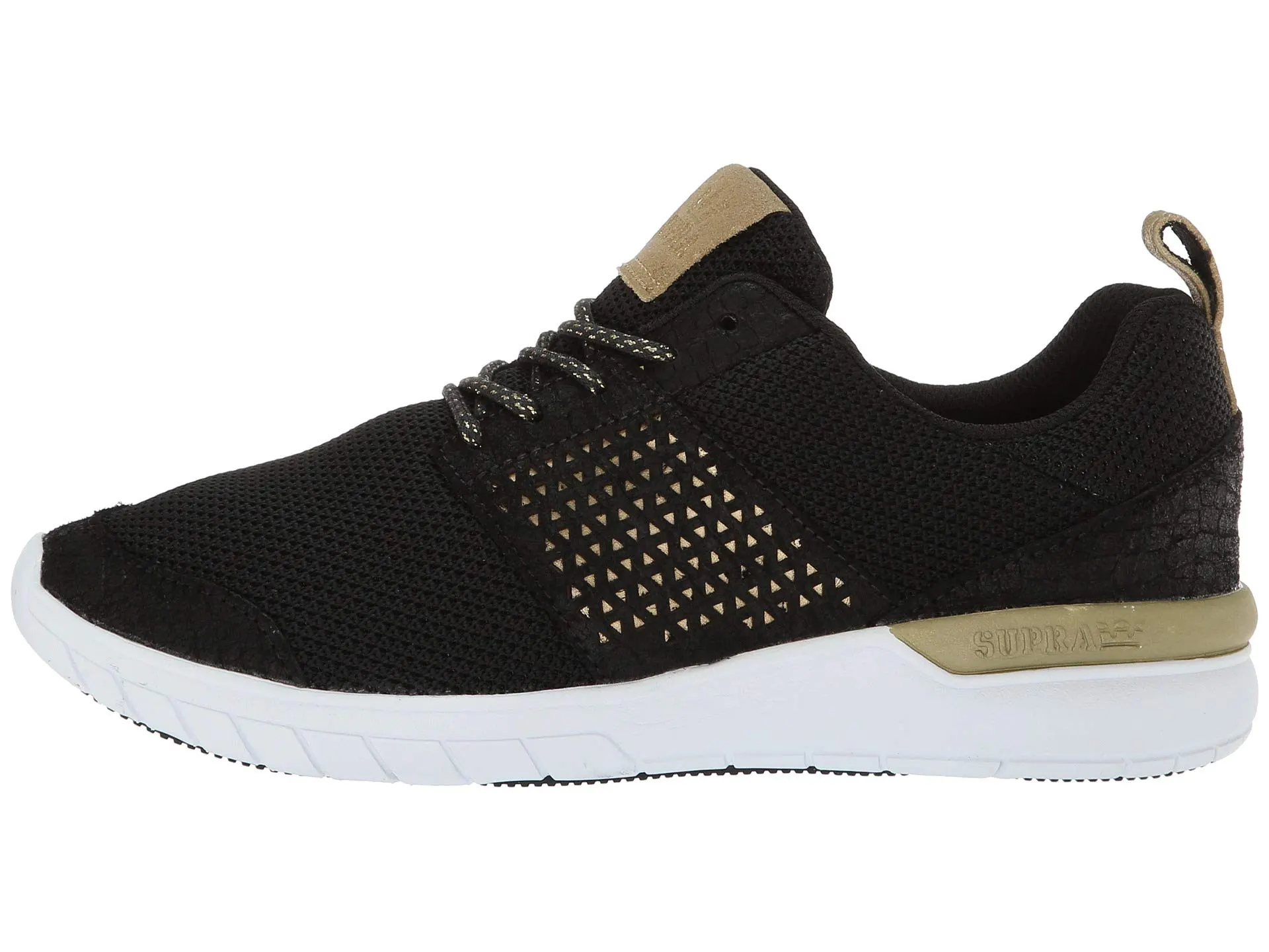 The shoe comes in three color options and is designed for running, skating and of course, street style. The Supra Scissor features a padded mesh lining, breathable mesh on its upper portion and a sole made of ultra-soft SUPRAFOAM for heel protection and overall comfort. The SUPRAFOAM sole also includes black traction pads meant to prevent slipping. An overall lightweight feel makes the sneaker a practical choice for easy movement.