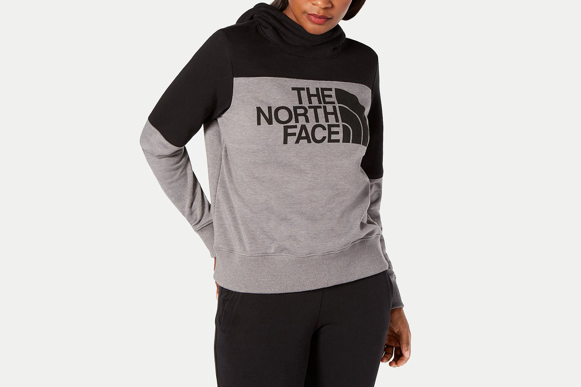 One unexpected feature we absolutely have to point out on this TNF piece is the neckline. We know, what could be so special about the neckline of a hoodie? But this isn’t the typical drawstring style you’d expect. This hoodie actually features a mock neckline, which is incredibly trendy right now. You’d usually see this type of design on a sweater, but having it on a sweatshirt is all the more exciting!