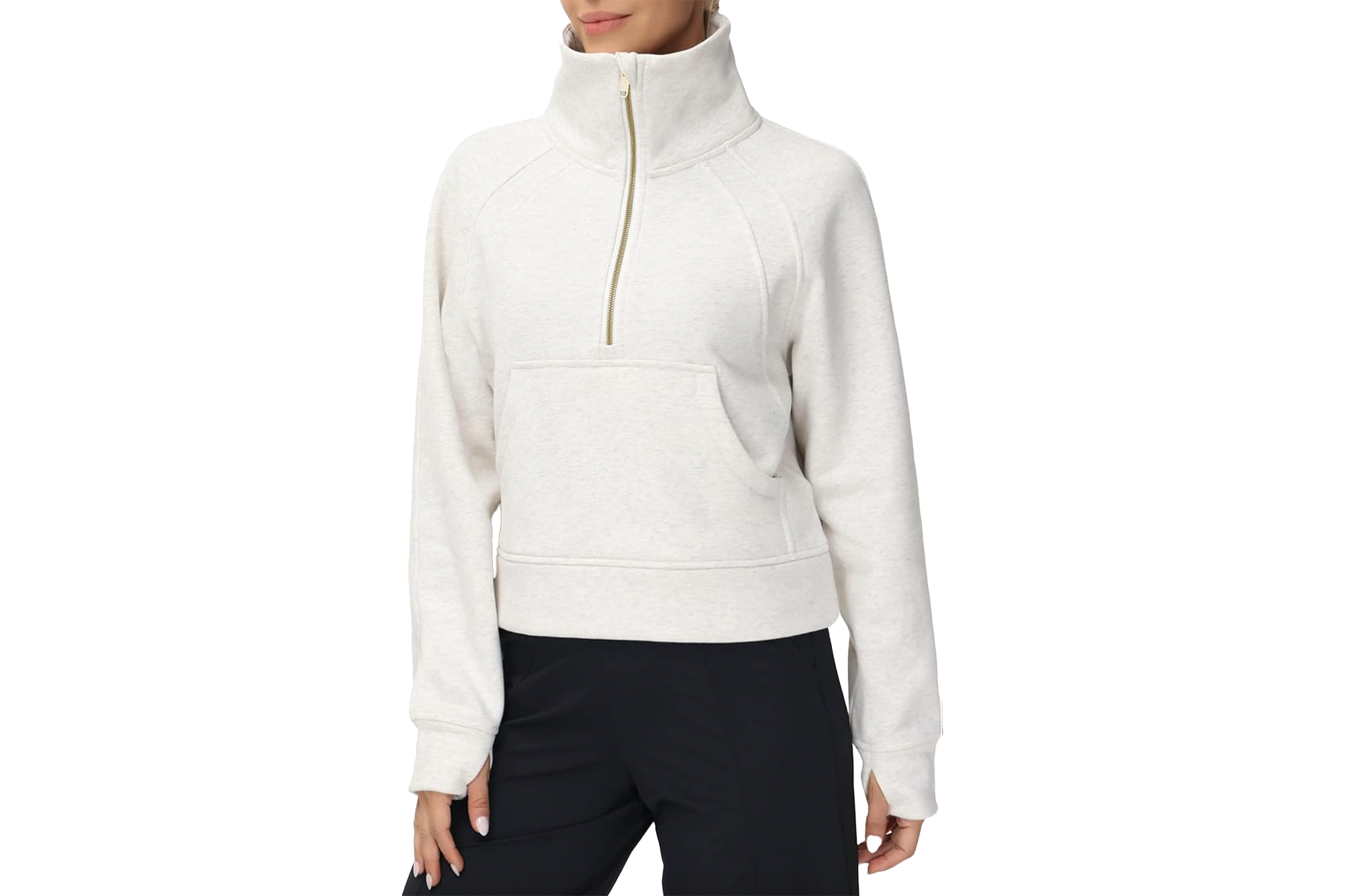 One happy Amazon reviewer noted, “I absolutely love this cropped sweatshirt! I am 5’7” and 135 pounds, so I ordered a medium. It’s the perfect length, not too cropped. The sleeves are also the perfect length. It’s warm and cozy! Perfect for fall & winter. I love that you can wear the color down or have it stand straight up. It’s a little more “structured” and not as stretchy as a regular sweatshirt would be, but I love that feature. It makes the sweater more flattering. I will probably order in more colors!”