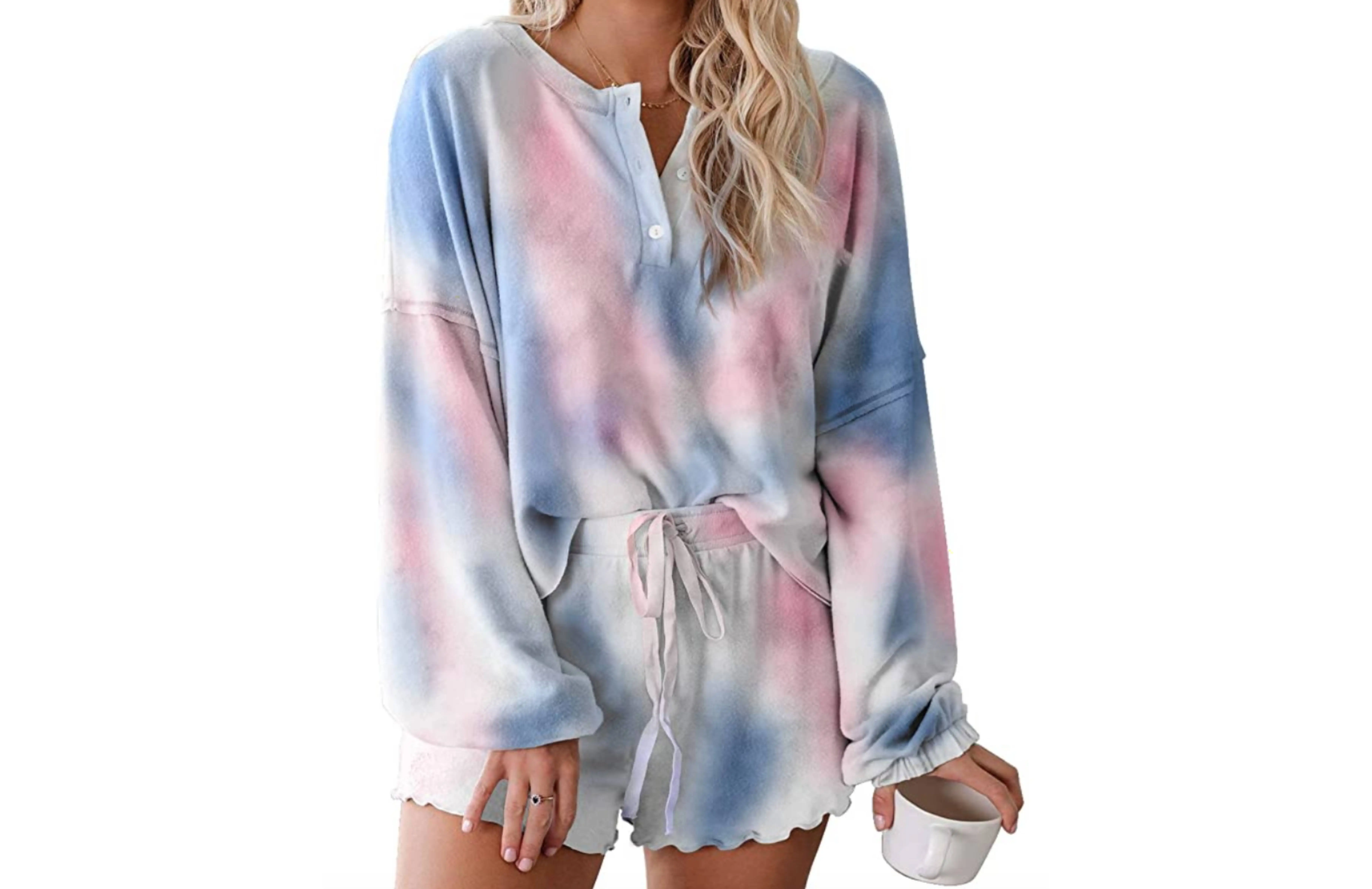 Get the Asvivid Womens Tie Dye Printed Ruffle Short Pajamas Set for prices starting at just $14, available at Amazon! Get it as soon as May 15, 2020. Please note, prices are accurate at the date of publication, April 22, 2020, but are subject to change.