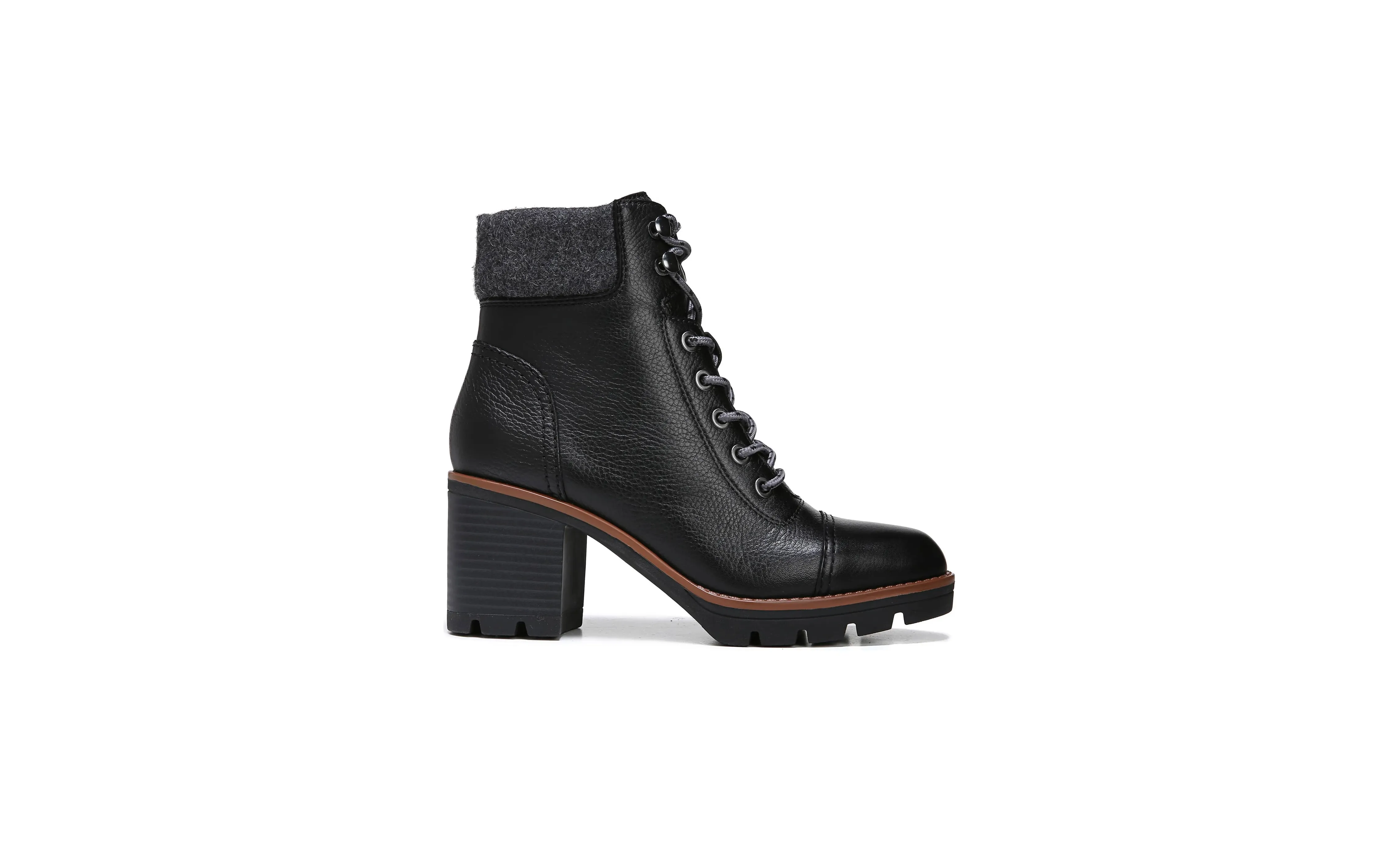 We love when we have different color options to choose from, but we can’t help but point out that the lugged waterproof booties are just as versatile even though they’re only available in one color. The black leather is simply beyond. The flannel cuff, which also matches the shoelaces, is somewhat of a grey-black hue. It adds such a pop of color, which makes all the difference to break up dark or black shoes. Additionally, we can’t help but obsess over the tan stripe on the lower sole. It truly makes this boot even more versatile but is subtle enough to blend right in or stand out if we want it to.