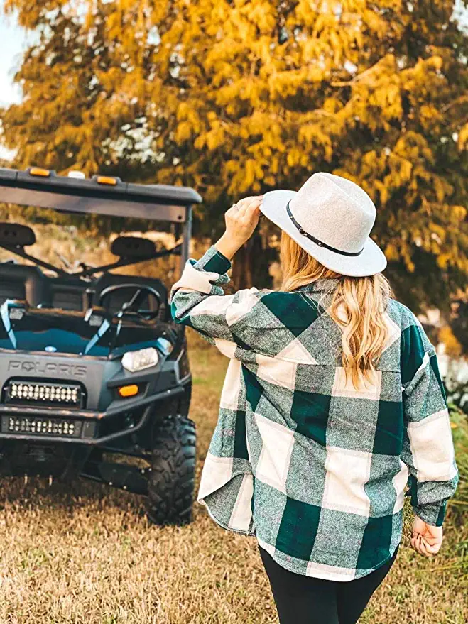 Let’s talk styling! I personally prefer to wear a wide-brimmed hat with OOTDs that already feel a little rustic or boho-chic. For instance, I might pair this fedora with a flowy floral dress and booties on a breezy fall day. I’ve also worn this look with plaid shackets and jeans to a pumpkin patch or tailgate for a casual look with a little extra edge. No wonder so many celebs and influencers swear by this style!