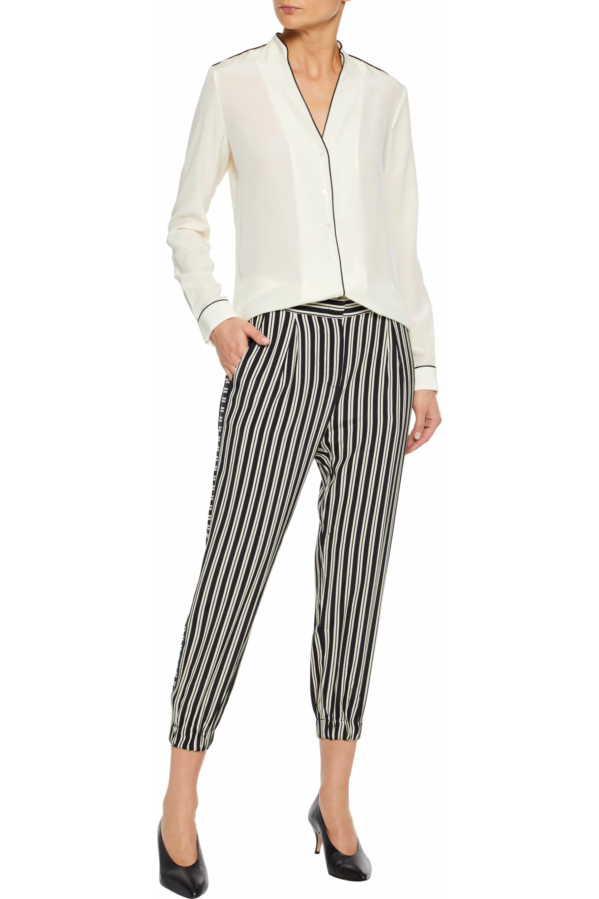 You can only get the brand on Outnet, though all styles are at a pretty affordable price point (which we obviously love). There’s a lot available, so Shop With Us put together a list of seven items we want in our closets right away. Peruse our selection of on-trend blouses, vacation-ready skirts, workwear trousers and more. Try not to go overboard, but we can’t blame you if you do.