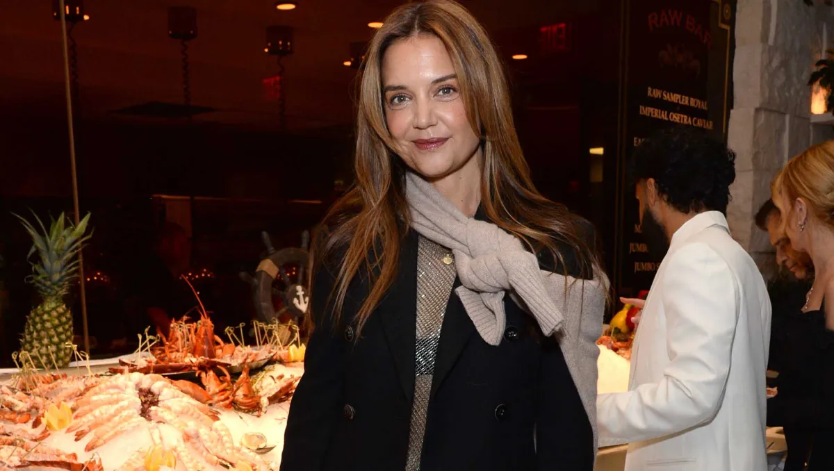 Katie Holmes just reminded Us why she’s one of our guiding lights for all things fall fashion. Holmes was recently spotted at a restaurant grand opening in New York City, and of course, she was dressed to impress. She paired a shimmering mesh blouse and smooth leather trousers with the pinnacle of cold-weather fashion: a luxurious peacoat.