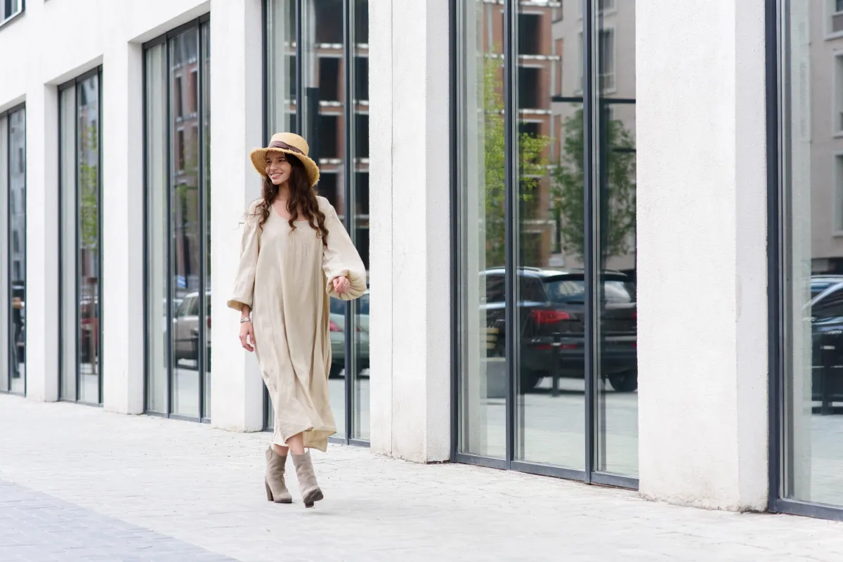 8. Antique Flair: Don’t be surprised if heads turn. You’ll look like a million bucks in this loose, flutter-sleeve midi that highlights your waist.