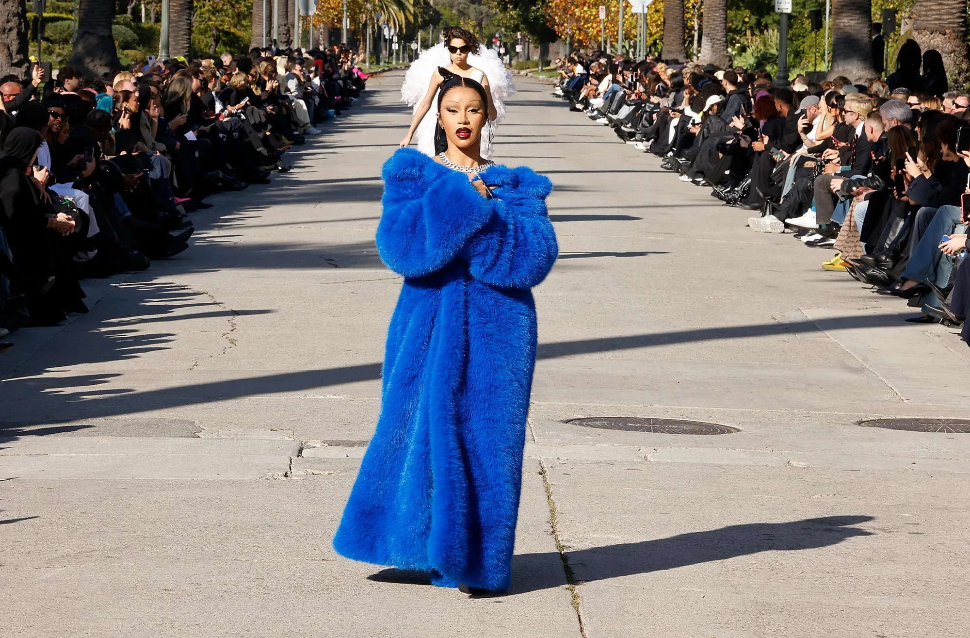 Cardi B completely owned the Balenciaga Fall 2024 fashion show — stealing the show in a faux fur coat and a diamond necklace.