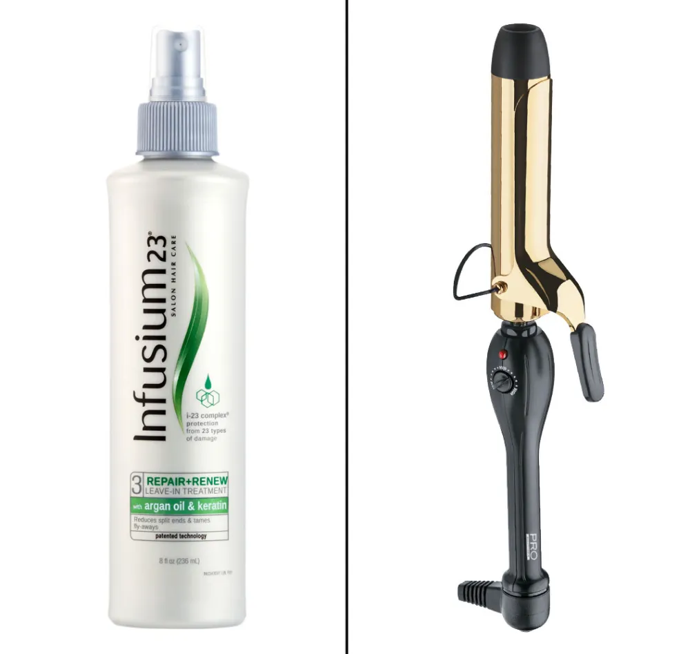 1. Infusium 23 Repair + Renew Leave-In Treatment 3, $7.19 for 33.8 oz, target.com; 2. PRO Beauty Tools Professional Gold Curling Iron, $25, target.com